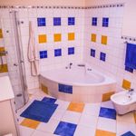 На первом этаже нас встречает просторная прихожая, ведущая к элегантно расположенной гостиной комнате с камином. Дальше находится полностью оборудованная кухня и большая столовая. Просторный коридор ведет нас в СПА-зону - пространство для релаксации и отдыха. Там мы найдем "финскую" сауну с массажной кабиной Kolpa-San, оборудованный фитнес-зал, джакузи Höesch. В непосредственной близости от помещений для релаксации и отдыха находится винотека, оборудованная специальным холодильником для вина.