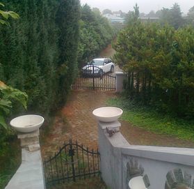 На первом этаже расположены 4 спальни, кухня, связанная лифтом с подвальной кухней.