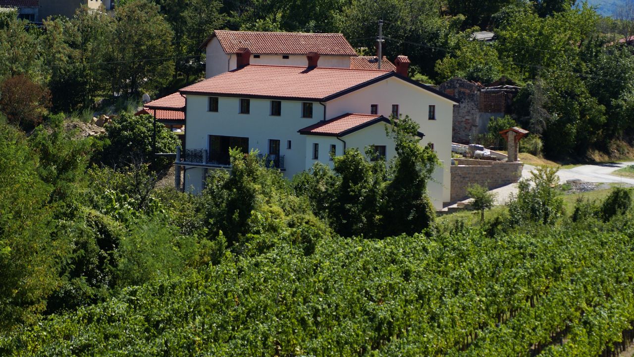 На исключительном месте в сказочном крае Горишка Брда продается роскошная вилла с крытым бассейном и спа-центром, с прекрасным видом с северной стороны на виноградные холмы и Альпы, с южной - на море.