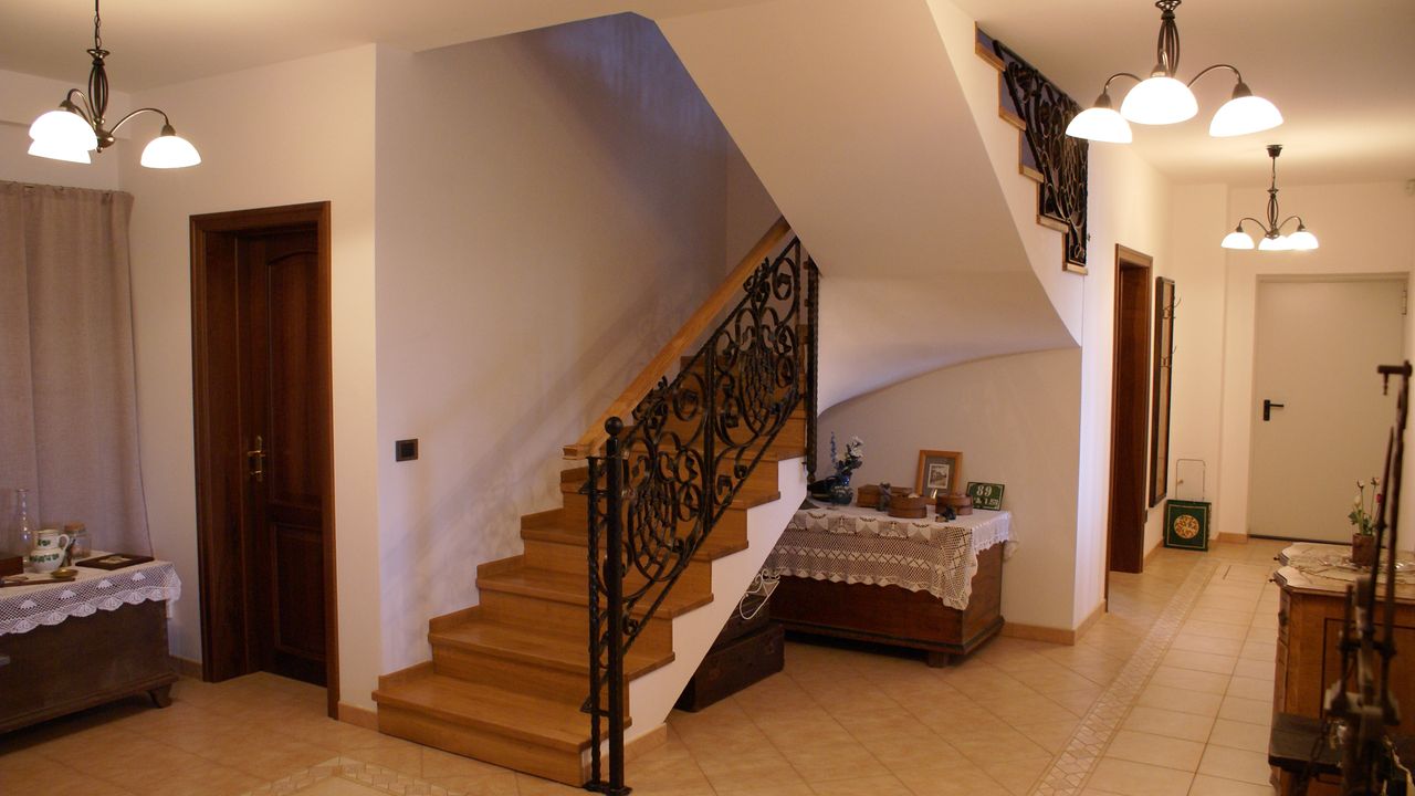 В вилле 8 комнат, винный погреб, 3 ванные комнаты с душем и туалетом и одна с ванной, кроме того еще 3 туалета. Во всех 8-ми комнатах есть телевизор, внутренний телефон, связанный с входной дверью, которую можно открыть с помощью этой системы.