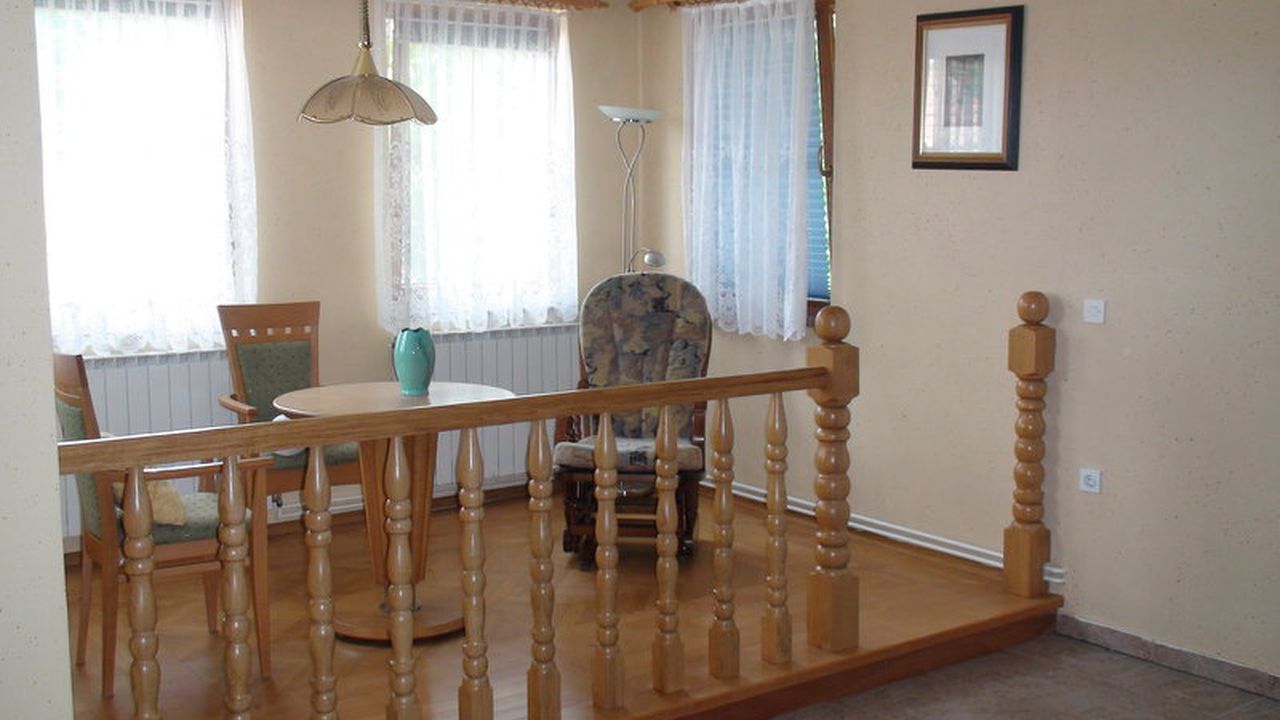 Обновленный и хорошо сохранившийся крестьянский хутор на северо-востоке Словении с более чем 6 га земли, с цехом, сараем и другими постройками. Здесь будет идеально соорудить маленькую гостиницу или пансион. Дом был построен примерно в 1930 г., и находится в приличном состоянии. Черепицу обновили в 2001 г., штукатурка покрашена, в комнатах был ремонт и еще была построена дополнительная ванная комната. К участку проход по щебёночному покрытию. Главный вход ведет в корридор и далее к большому вестибюлю. Несколько дверей ведут от него к большой кухне с полностью оформленным мягким уголком и дополнительным помещением, также в зал и спальню, еще в одну маленькую спальню и в большую семейную комнату. Здесь также находится и отдельный туалет. На фронтальной стороне дома расположена красивая терасса. Под домом полностью построен подвал, с подвалом со сводом. 1 лестница ведет на 1й этаж, где находятся еще две, пока не оборудованные комнаты. Также есть чердак, который тоже можно обустроить. К первому этажу примыкают 2 большие мастерские и маленький деревянный сарай, в котором еще одна мастерская, а также гараж. Земля, относящаяся к дому земли, включает в себя более чем 6 га леса, пашни, фруктовых садов и виноградников.