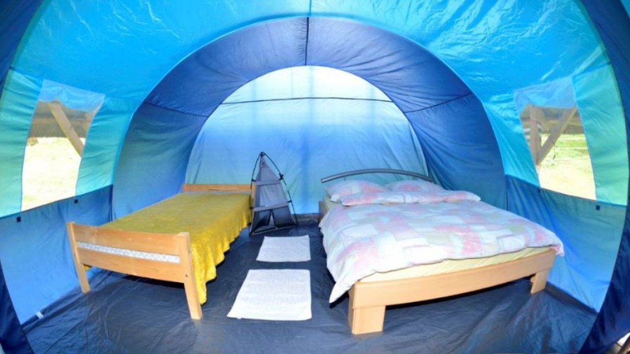 Кемпинг - включает 6 деревянных домов на 2 или 3 человека и большую палатку для 2 человек с ребенком.