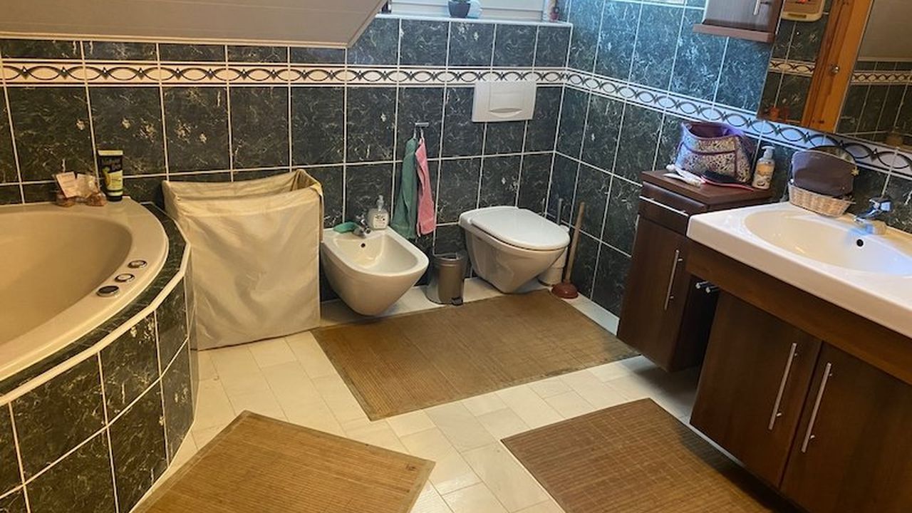On the second floor there is a study with an additional living room, three bright bedrooms overlooking a sunny lawn with an orchard and forest. Dressing room and large bathroom with Finnish sauna and jacuzzi, shower, bidet, toilet and double sink.