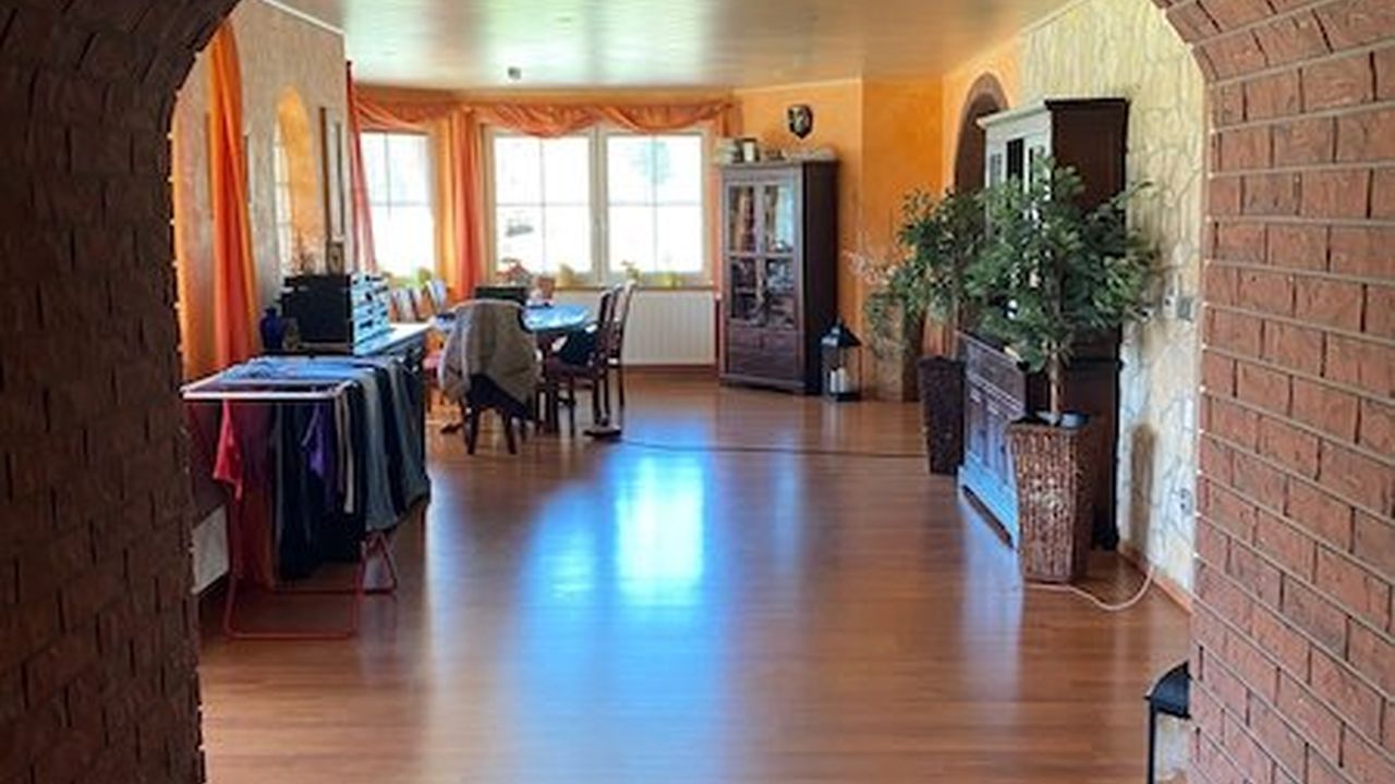 In the basement, there is a large lounge with a large oak table for more than 10 people, a wine cellar, a workshop, a boiler room, a large garage for three cars.