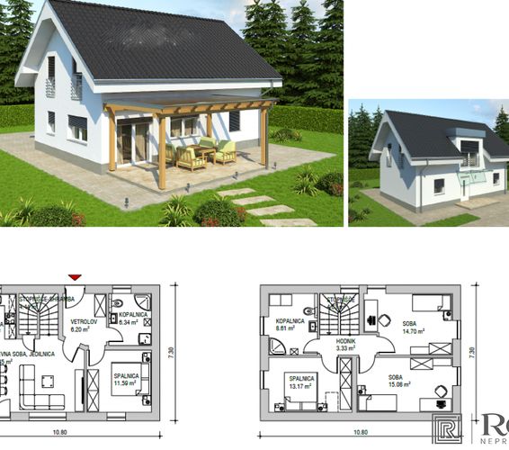 Описание: В доме функциональное распределение помещений, 2 террасы, во дворе есть парковочные места для двух автомобилей (макс. вместимость – 4). Вся инфраструктура в радиусе 2 км, ж/д остановка – 6 мин пешком.
