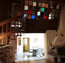 Столовая ведет нас в открытый лаундж, который, помимо большого камина, также соединяет лестницу с галереей (около 24 м2). Галерея имеет выход на балкон, в то время как она сама может предоставить достаточно места для работы или отдыха.