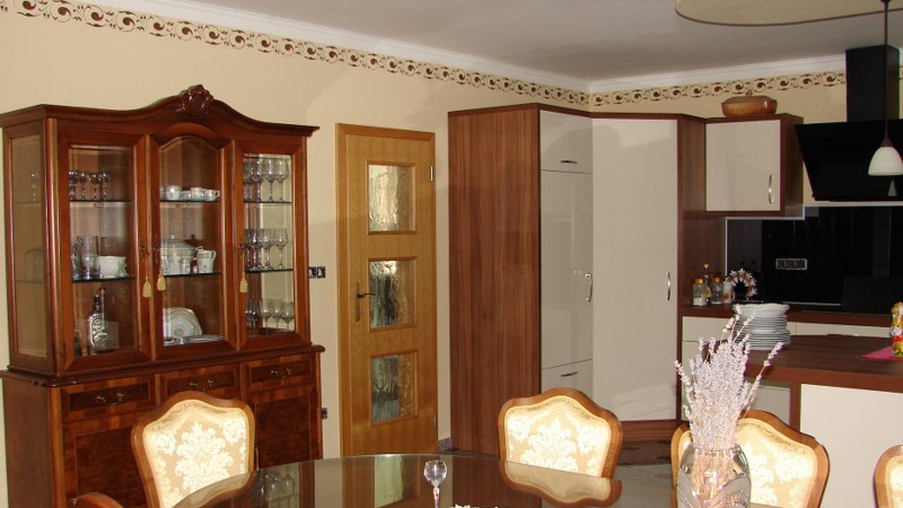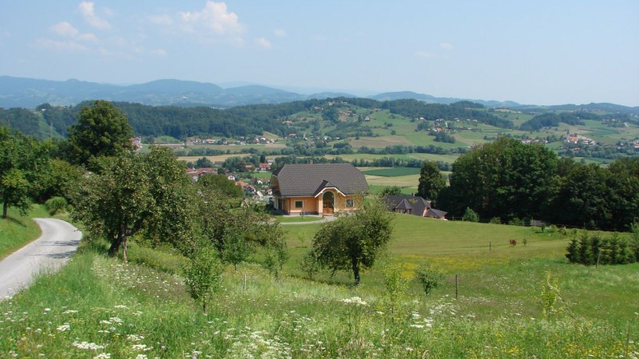 Продается новый дом с большим поместьем на смотровой площадке, которой можно позавидовать. Кроме спокойствия, солнца, прекрасного вида, место предлагает возможность выращивать свои овощи или заниматься животноводством. Дом 2008 - 2012гг. постройки. В цокольном этаже находится: салон с кухней (столовая на 20 человек), гараж, погреб в земле (около 20м2), котельная + туалет, кладовая. На первом этаже находится большая общая комната (столовая и гостиная с выходом на балкон) с камином, кухня, спальня, ванная комната. Мансарда включает в себя: 4 спальни (все с выходом на балкон) и ванную комнату (ванную еще необходимо оборудовать). Дом имеет все подключения, отопление осуществляется с помощью теплового насоса (для отопления дома и воды на территории поместья на глубине 1,5 м вкопано около 1 км подземных труб). По всему дому полы с подогревом, изоляция фасада Demit толщиной 12 см. Дождевая вода собирается в резервуар объемом около 48000 л, а затем используется на санитарные цели и для cтиральной машины. Возле дома находится новый деревянный сарай для овец и крупного рогатого скота. Поместье занимает около 3 га (или 29544 м2), но есть возможность докупить оставшихся около 2,5 га (около 1 га занимает черноплодная рябина). Земля состоит частично из площадей со строениями, частично лугов и лесов. В основном на солнечной стороне и с небольшим наклоном. Хорошее месторасположение, до города Шентьюр всего 3 км (школа, детский сад, банк, поликлиника, муниципалитет, магазины, железнодорожная и автобусная станции ........). Природа же предоставляет неограниченную возможность для активного отдыха. Шоссе всего в 10 км, также как и Целье, до термального курорта Рогашка Слатина 23 км.