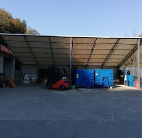 В дополнение к складу также имеется тент площадью 19 х 7 м, т.е. 133 м2 дополнительного крытого пространства для хранения.
