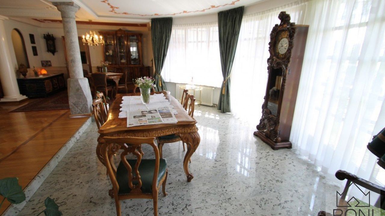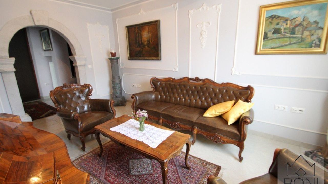 Дом находится в живописном месте вблизи Савинских Альп, в 10 км от города Крань и 20 км от Любляны, общая площадь дома - 542 m2, построен в 1985, полностью обновлен в 2003. Дом продается со всей обстановкой, которая представляет собой коллекцию искусства и антиквариата, собранную в различных частях Европы с любовью и страстью коллекционера. Антикварная мебель, люстры, картины и скульптуры, изделия различных мастеров и огромная изразцовая печь ручной работы, которая согревает всю центральную часть дома, создают неповторимую атмосферу уюта и роскоши прошлых веков.