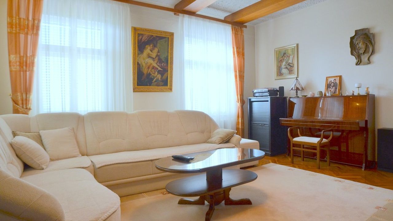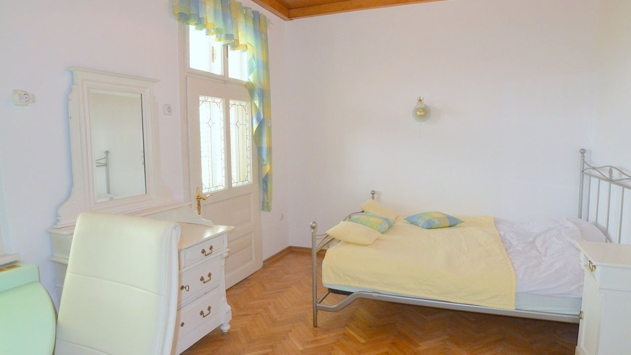 Дом классической конструкции (кирпич), деревянная крыша, высота потолков 2,9 м, кондиционирование.