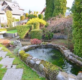 Дом расположен на очень большом участке, общей площадью 2 941 м2. Помимо дома есть мастерская, гараж, кладовая и летняя беседка.