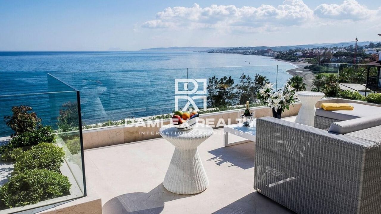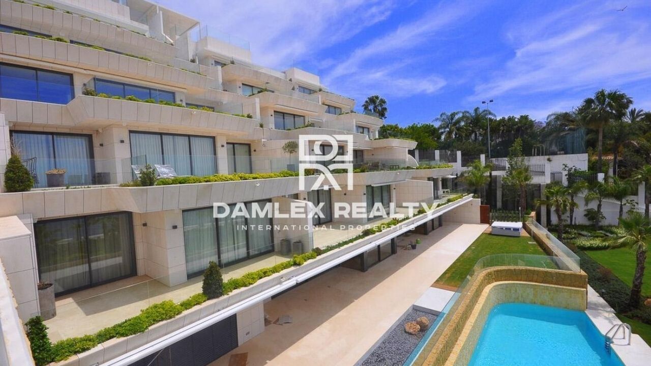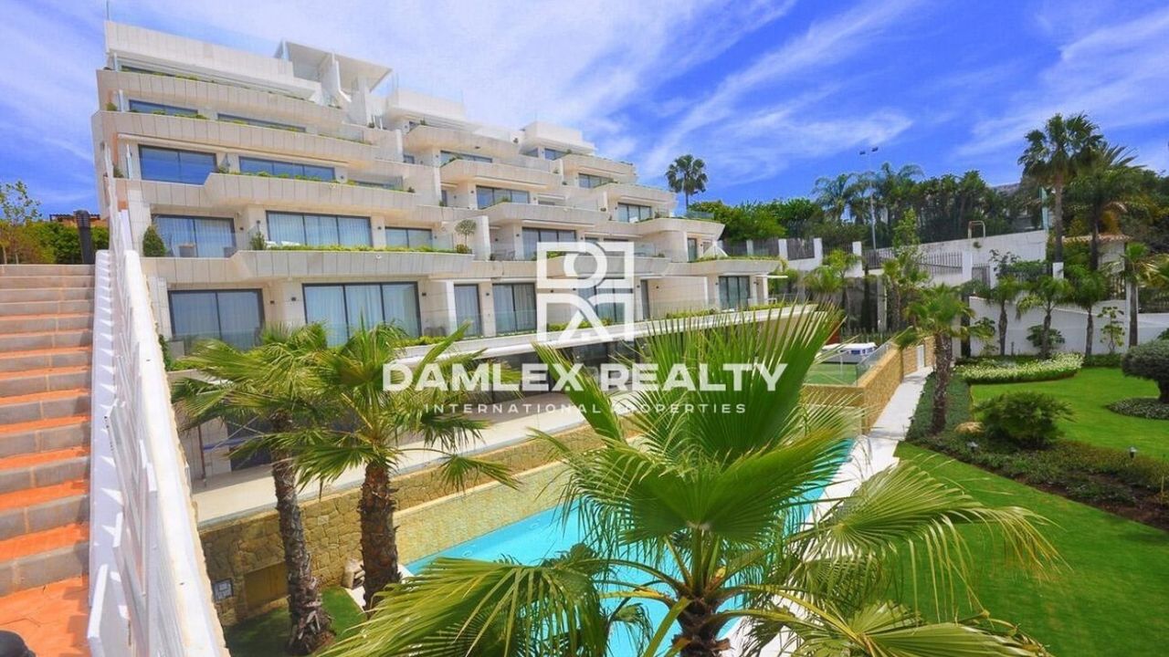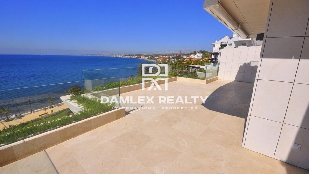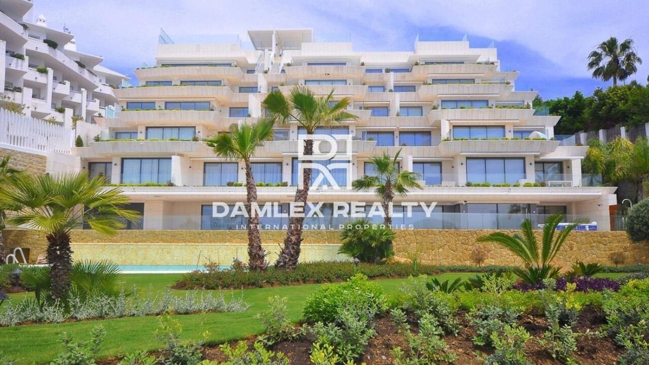 Апартаменты с 2 спальнями, 3 ванными комнатами, туалетом, гостиной-столовой, полностью оборудованной кухней с фирменной техникой Gaggenau, площадью 112 м2 и просторной террасой 63 м2, которая смотрит в южном направлении. С террасы открывается великолепный вид на Средиземное море и Гибралтар. При входе вы попадаете в небольшую прихожую, из которой вы можете пройти в спальни. Каждая из двух спален имеет собственную ванную комнату. Так же есть гостевой туалет. Большая гостиная объединена с кухней, которая оборудованна всей необходимой бытовой техникой. Жилой комплекс, где расположены апартаменты находится всего в 30 м от пляжа. В том числе в стоимость включены 2 парковочных места и 1 кладовка площадью 25 м2. Жилой комплекс находится в нескольких минутах ходьбы от пристани для яхт Эстепоны и всего в 15 минутах от центра города. Он окружен 2 500 м2 прекрасного сада и имеет SPA-зону, открытый бассейн с подогревом, тренажерный зал, сауну и турецкую баню.