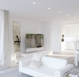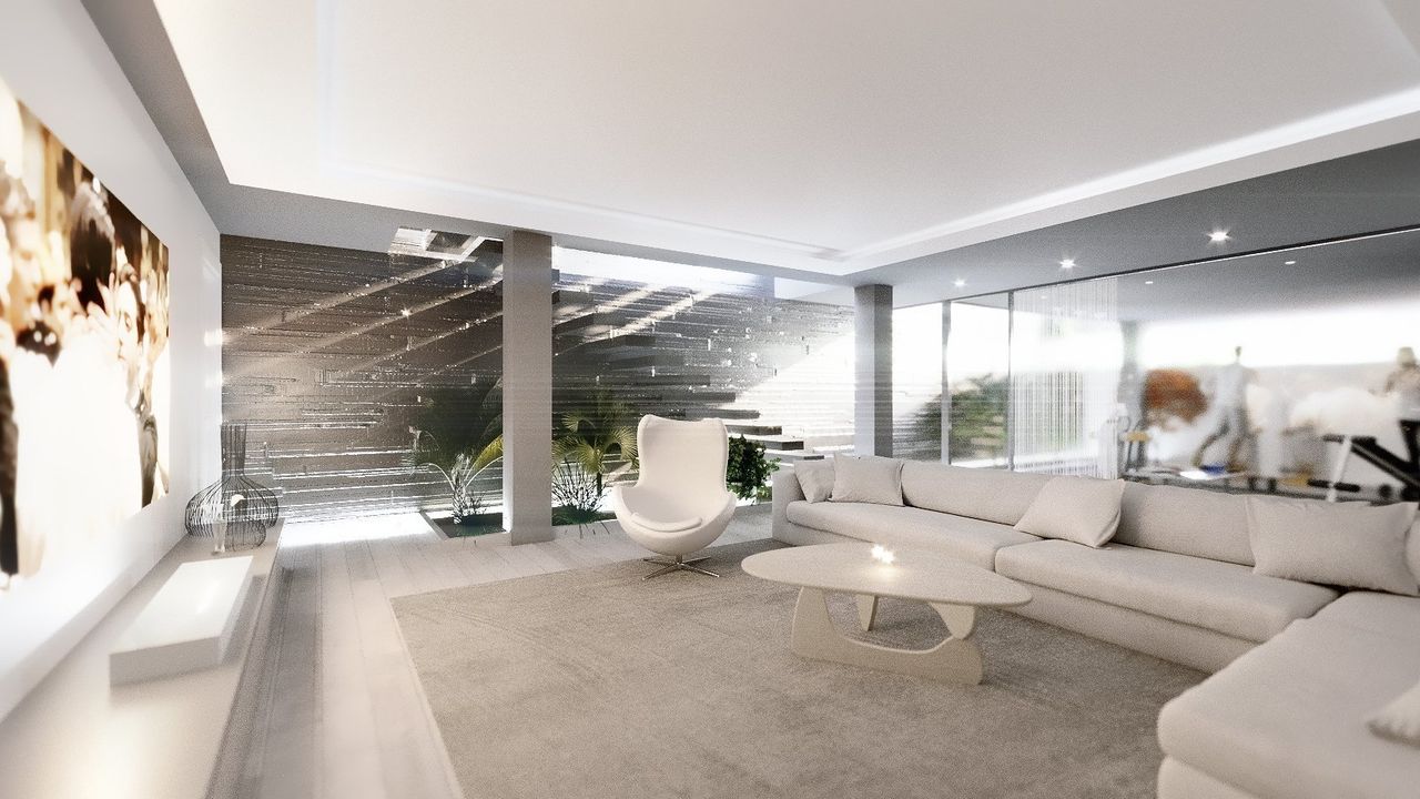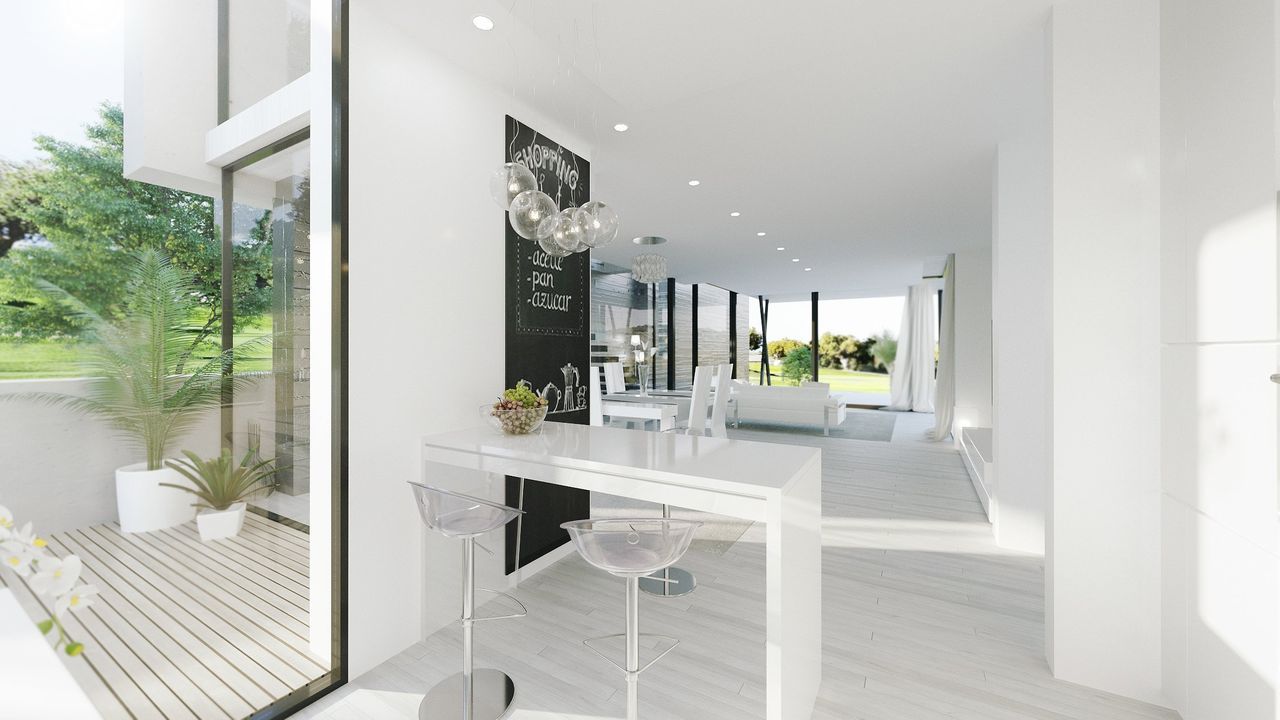 Porcelanosa фарфоровые полы, окна от пола до потолка, где естественный свет заливает все просторные комнаты.
