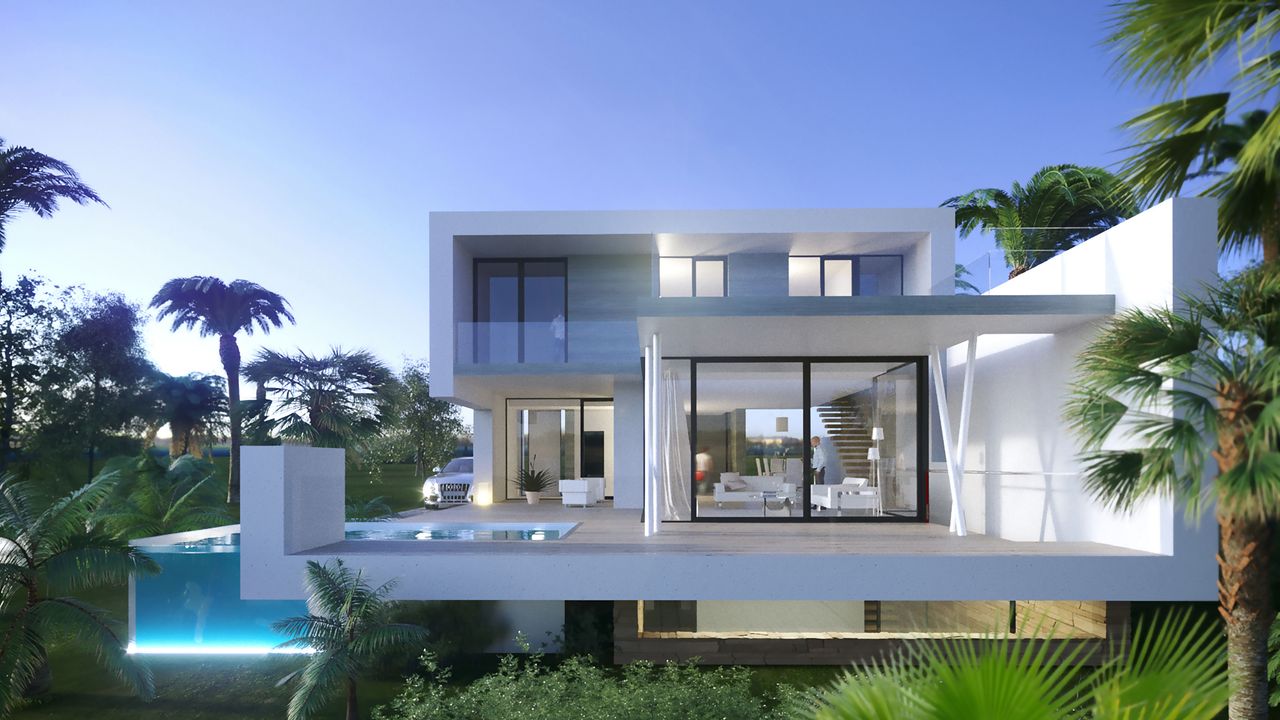 Новая вилла площадью 310 м2, построенная на участке площадью 500 м2, с погребом, солярием, финской сауной, тренажерным залом и собственным пейзажным бассейном на первой линии от поля для гольфа.
