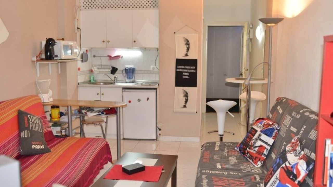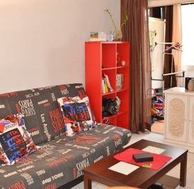 светлая гостиная и обеденная зона с двумя диванами-кроватями,