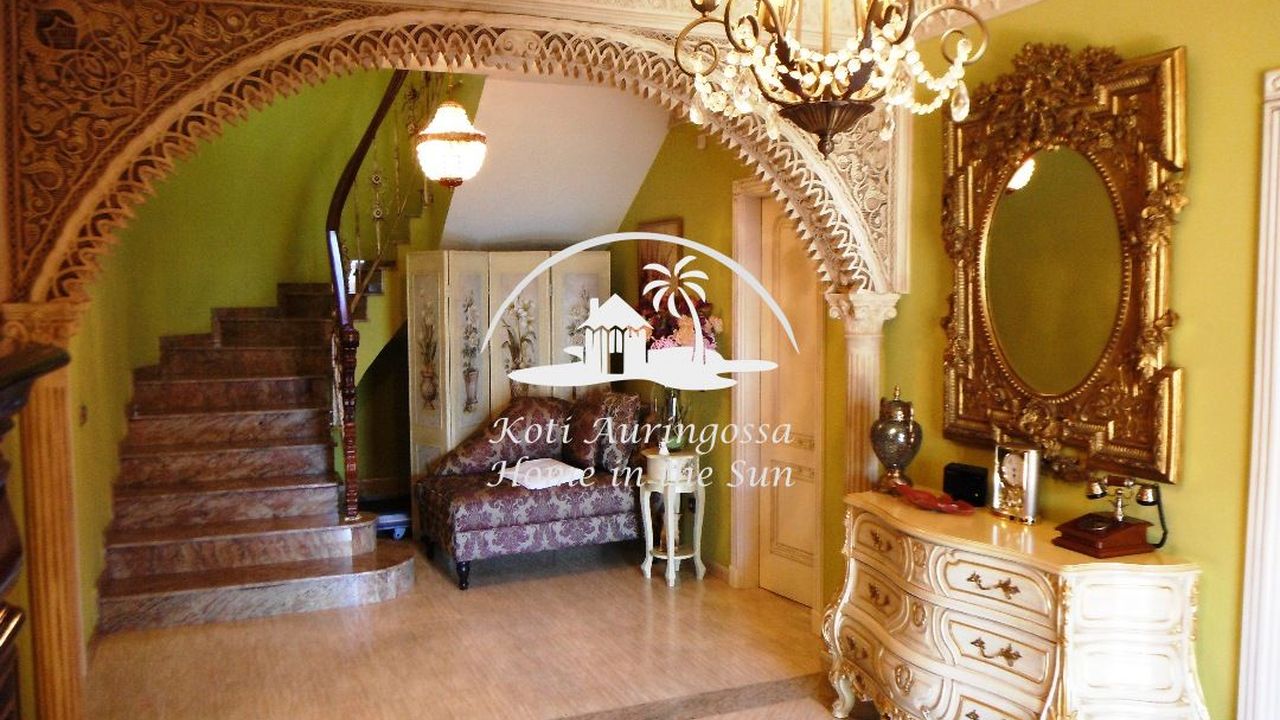 На строительство этой красивой виллы денег не сэкономлено, выполнено высококачественно. Красивая арабская архитектура использовалась в дизайне вокруг дома, внутри, так и снаружи, с множеством красивых привлекательных деталей. Великолепный вестибюль с арками, с широкой мраморной лестницей наверх. В доме есть 3 очень просторные спальни, довольно большое помещение для подсобки, красивый просторный гардероб, большое пространство для шкафа, большая светлая гостиная и столовая с камином, полностью оборудованная современная просторная кухня со всеми удобствами, 3 красивые ванные комнаты с гидромассажной душевой кабиной + ванна, 3 туалета. Также имеется уютный винный погреб с большой печью для выпечки, бассейн и красивый сад вокруг дома.