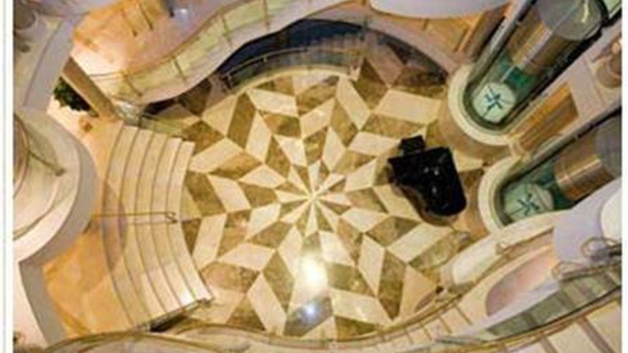 - просторный холл с разноцветной мраморной плиткой и колоннами, в холле: лифт, гардероб, сейф, лобби с удобными креслами и баром