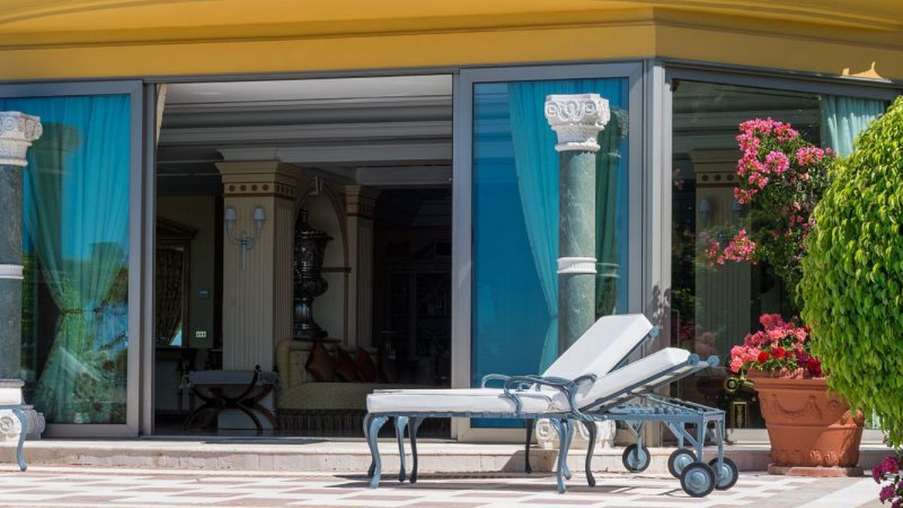 На верхнем этаже главная спальня с ванной комнатой, несколькими гардеробными и выходом на большую террасу, а также кабинет.