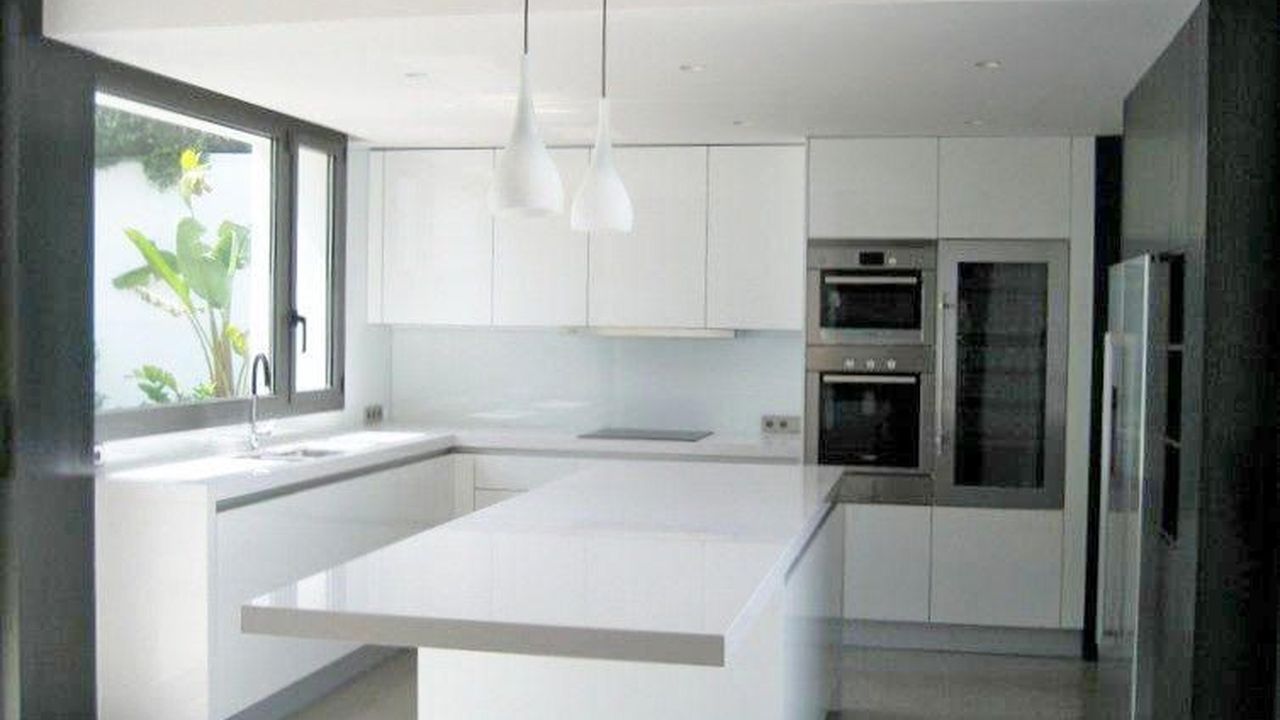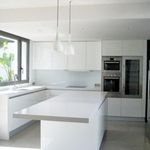 Справа от холла полностью оборудованная кухня: рабочие поверхности Silestone, на центральном островке бытовые приборы Bosch, в соседнем помещении прачечная. Комната прислуги с ванной комнатой и своим входом в дом. Из кухни есть выход на террасу и в сад. Также на этом этаже: 3 спальни, одна из них с выходом на крытую террасу в гостиной.