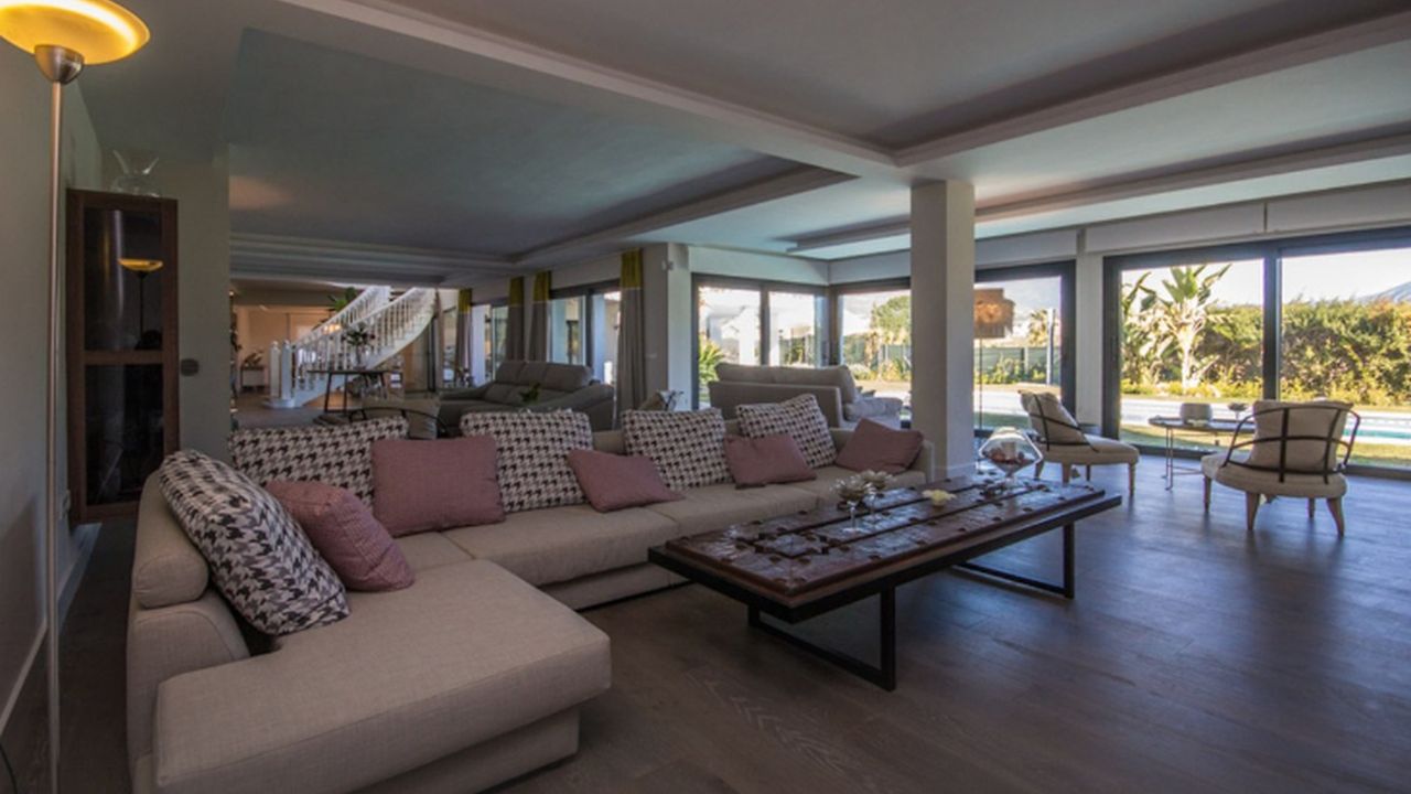 Спроектированный как открытое жилое пространство, этот уровень виллы объединяет столовую, кухню, гостиную, ТВ-зал и террасу. Высококлассная кухня с несколькими гостиными и прямым выходом на внешнюю столовую идеально подходит для размещения множества гостей. Дополнительный свет приносит приятный и легкий в обслуживании внутренний дворик, освещающий гостиную с камином и прекрасный вид на сад и горы. Гараж на 5 машин и гостевая квартира с одной спальней имеют легкий доступ к гостиной и кухне, еще одна гостевая квартира с одной спальней расположена на другой стороне дома. Очень приватная и роскошная вилла в лучшем месте Марбельи.