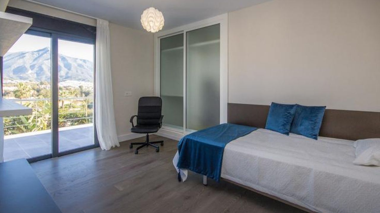 Этот дом был превращен из старого дома 80-х годов в его нынешнюю виллу в своем роде за 2 года работы. ... м2 жилой площади хорошо распределены на 2 этажа с 2 отдельными квартирами. Верхний этаж состоит из красивой прихожей с открытым видом на Ла Конча, 4 спален и 2 ванных комнат в восточном крыле и еще 2 спальни с главной спальней с большой ванной комнатой и гардеробной в западном крыле виллы. 5 спален с прямым выходом на большую террасу на этом этаже. Большая лестница ведет вниз к главной жилой зоне, но также предварительно установленный лифт соединяет два уровня.