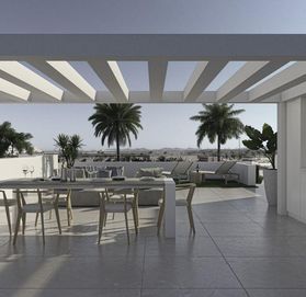 On the territory of the complex there are several communal swimming pools, parking by the road for each apartment, a storage room and a terrace with a summer kitchen. The apartments on the top floor have a solarium.