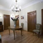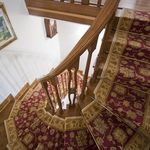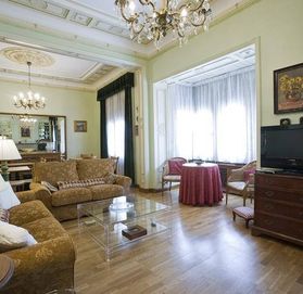 Отопление, кондиционер, паркет, двери и перила из массива дуба, лепнина, фасад украшают витражные стёкла.