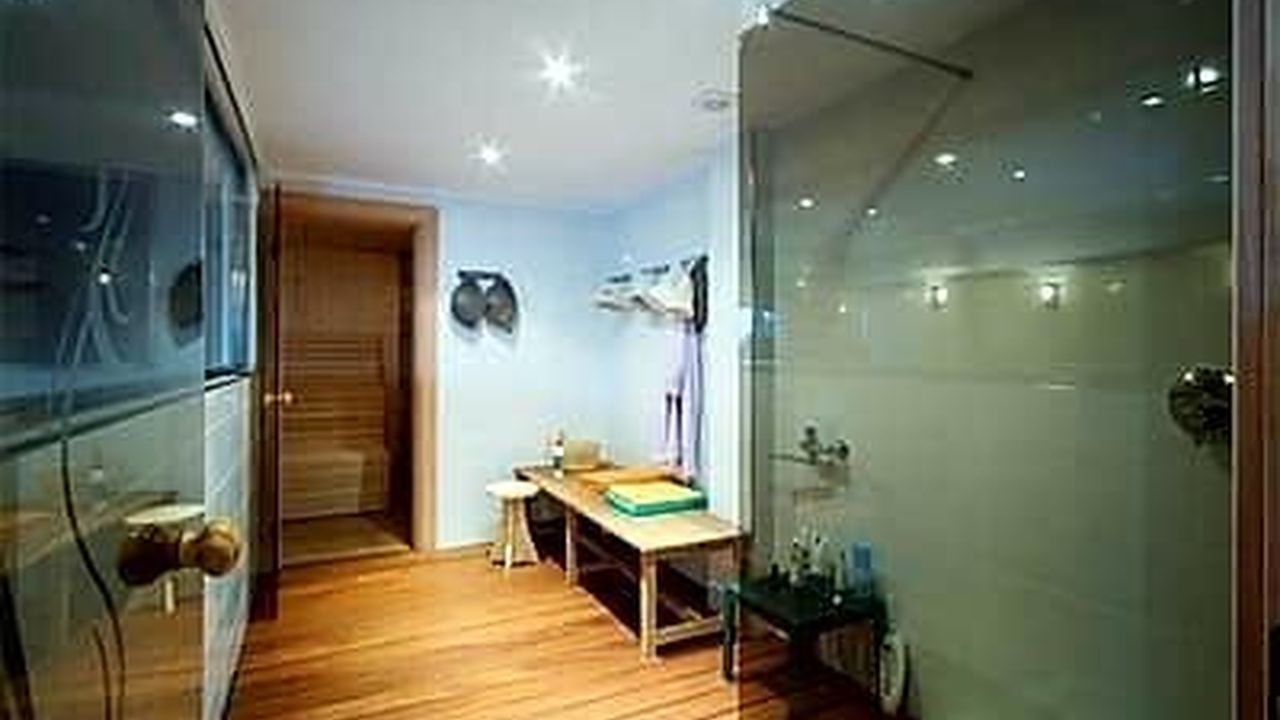Существует также отдельный коттедж с доступом в тренажерный зал с машинами, игровая комната с настольным теннисом, сауна и зона отдыха с баром, диванами и телевизором.