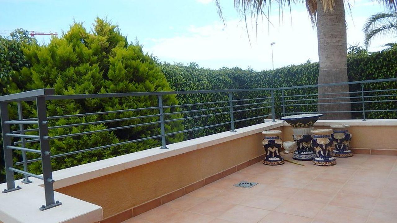 Роскошная вилла с видом на поле для гольфа, одном из эксклюзивных районах Аликанте. В 5 минутах ходьбы от остановки трамвая и от PAU 5 Пляж Сан-Хуан, данная недвижимость считается самой престижной в Аликанте. Вилла располагается на участке 475 м2, жилая площадь 330 м2, дом в 3 этажа, гараж и подвал, первый этаж с кухней и отдельной обеденной зоной, салон-гостиная, библиотека, терраса спереди и сзади с видом на поле для гольфа и частный бассейн, а на втором этаже три спальни с двумя ваннами, один туалет. Дом практически новый, в комнатах встроенные шкафы, кухня полностью меблирована и оборудована бытовой электротехникой, пол паркетный. Терраса в комнате с видом на поле для гольфа. Дом оборудован сигнализацией и домофоном. Окна распашные с москитной сеткой. Устаеовлена система смягчения воды на весь дом. Имеется предустановка для лифта. Дизайн авангардный в стиле минимализма.