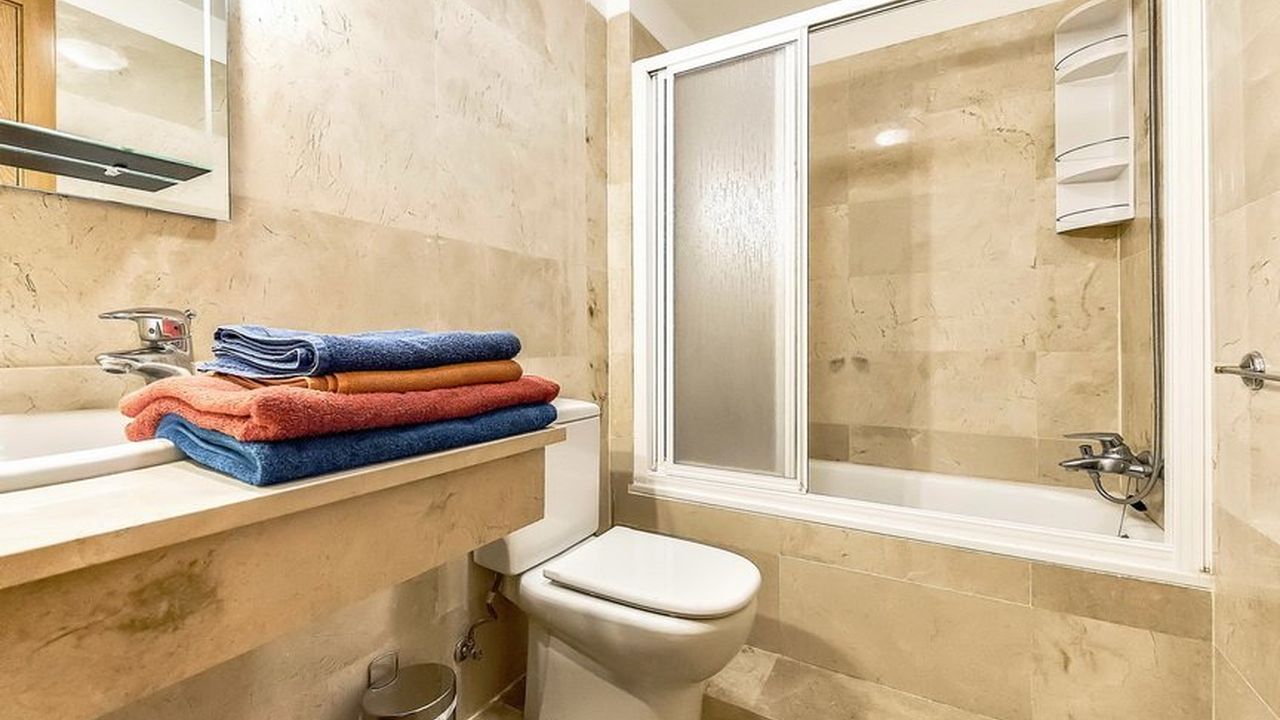 Этаж 1- (70м2): Главный вход, отдельная просторная и хорошо укомплектованная кухня, санузел, большая гостиная-столовая с ЖК телевизором, терраса с собственным бассейном, выход к общим бассейнам комплекса.