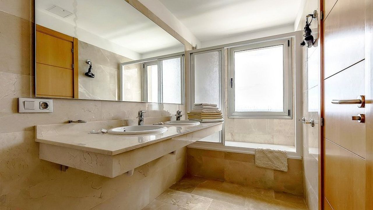 Основная спальня с двуспальной кроватью и просторными встроенными шкафами, ванной комнатой ин-сьют.