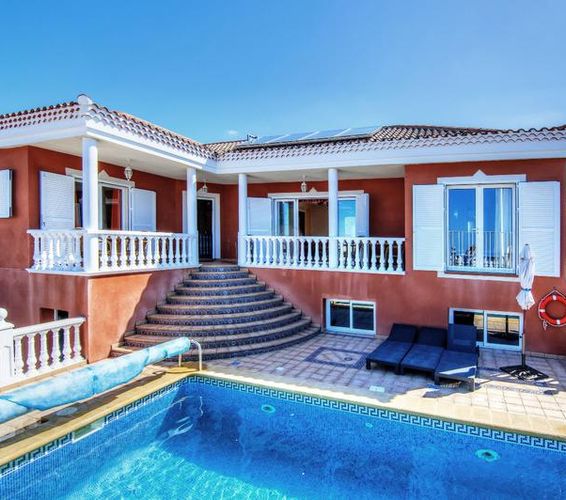 Великолепная вилла, расположенная на юго-западном побережье острова Тенерифе, в тихом районе, с прекрасным видом на океан и остров Ла Гомера, в Кайао Сальвахе. Это небольшой, но современный поселок, между большими курортами Коста-Адехе и Плая-Сан-Хуан. Кайао Сальвахе удобный, тихий и с хорошей транспортной развязкой и небольшим пляжем жилой район и менее чем в 10 минутах езды на автомобиле от основных пляжей , полей для гольфа, развлекательных и торговых центров .