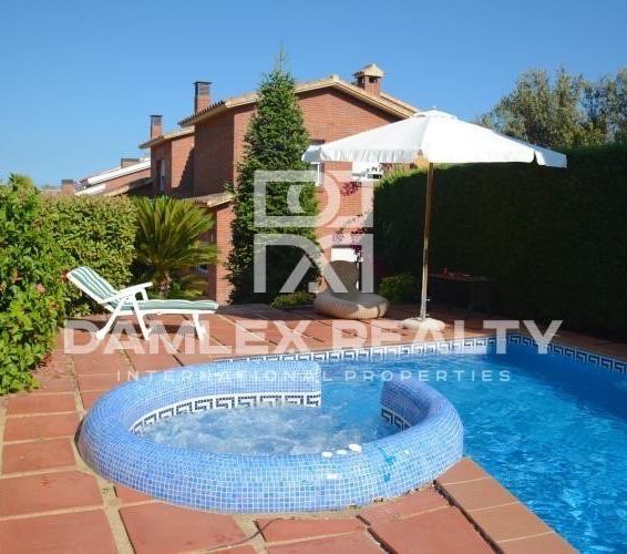 Вилла в городе Тейя с видом на море. Вилла расположена в ближайшем пригороде Барселоны, всего в 10 минутах езды от столицы Каталонии на машине. До Тейи можно добраться из Барселоны по скаростной автостраде на автомобиле, либо на автобусе, который идет от автовокзала Estació del Nord. Дом с большим садом расположен на возвышенности, что обеспечивает ему панорамный вид почти из всех комнат. На нижнем этаже расположен просторный салон с камином, из окон салона есть вид на море. Большая светлая кухня с выходом в сад. На верхнем этаже находятся спальни с видом на море. В саду есть бассейн.