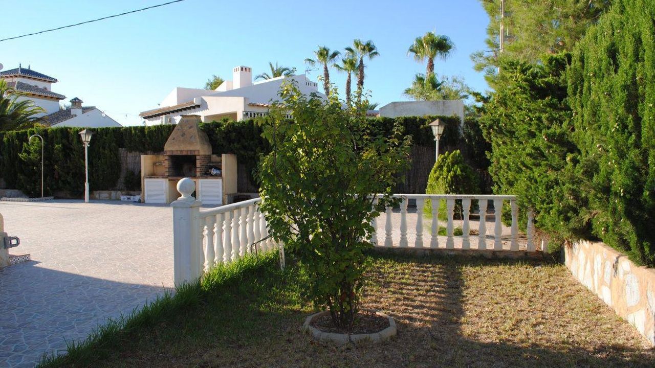 3 спальни, 2 ванные комнаты, частный бассейн, барбекю и гараж. Parcela 1066 m2 всего в 5 минутах езды от торгового центра Zenia, общественных и частных школ и гольф-полей Campoamor и Villamartin .