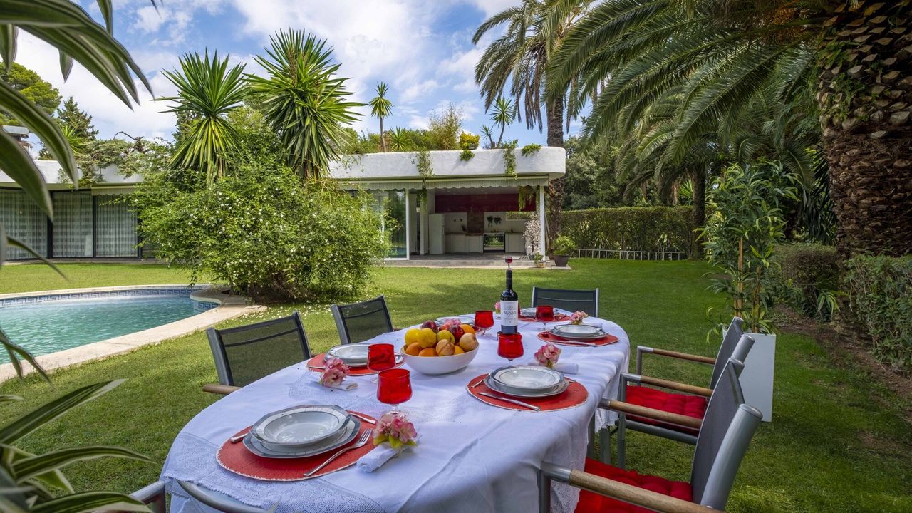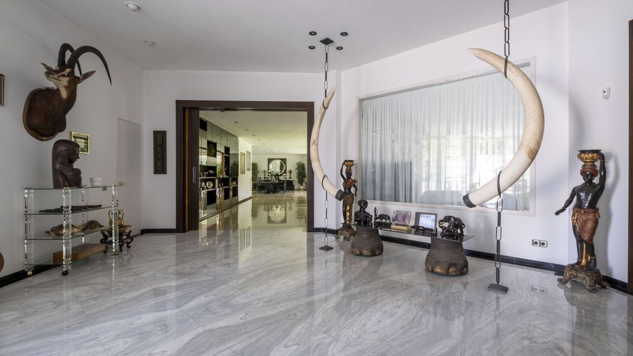 Дом площадью 810 м2. Основная часть дома площадью 500 м2 построена в один этаж, где есть три апартамента с ванной комнатой, главный апартамент площадью 26 м2 с ванной комнатой 24 м2. Просторная прихожая 40м2, две гостиные, столовая, гостиная с камином, кухня и кладовая. Важно отметить, что во всех помещениях общего пользования и ванных комнатах полы мраморные, во всех комнатах уложены шерстяные ковры. В основной части есть КРЫТАЯ ЛЕТНЯЯ СТОЛОВАЯ площадью 45 м2 с видом на бассейн и большой сад, окруженный пышными пальмами. Ниже есть еще один этаж для гаража на три машины и дом для персонала с двумя спальнями, ванной комнатой, кухней, кладовой и складом. С этого этажа есть доступ к другому нижнему этажу, где есть еще один гараж/тренажерный зал и погреб с частной коллекцией с более чем 1100 бутылками старых вин 1940 года, это уникальное место, где проходят «особые» обеды или ужины. Эта частная коллекция вин не включена в общую цену продажи дома, но, если это в интересах покупателя, «можно изучить» ее включение в продажу. Роскошный дом с высококачественной отделкой продается с мебелью и готов к заселению.