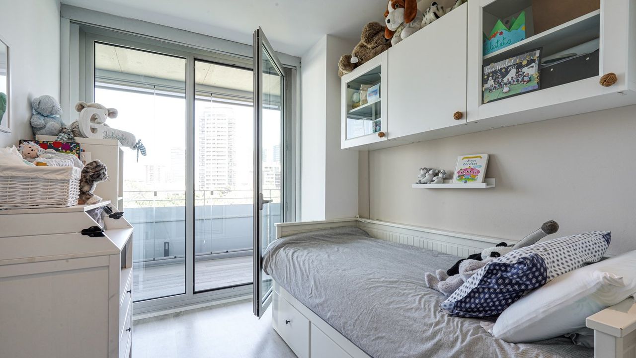 Интерьер квартиры состоит из трех больших спален и двух ванных комнат. Следует отметить, что вся квартира выходит на улицу, что позволяет обильному естественному свету проникать во все комнаты.
