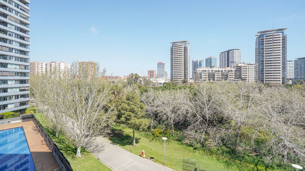 Квартира площадью 125 м2 с панорамным видом на парк в комплексе Illa del Cel в районе Диагональ Мар города Барселона.