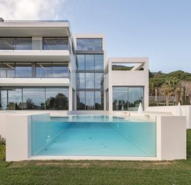 Оздоровительная зона, сауна и застекленный бассейн с подводной подсветкой размером 16 м X 4 м с пляжем 4 м X 4 м, крытый и открытый.