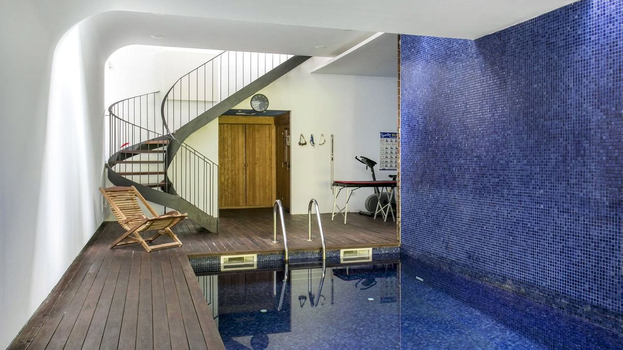 На цокольном этаже оборудованы крытый бассейн с 2-мя дорожками, сауна, тренажерный зал. Здесь установлена скульптура известного современного автора, Ernest Altés.