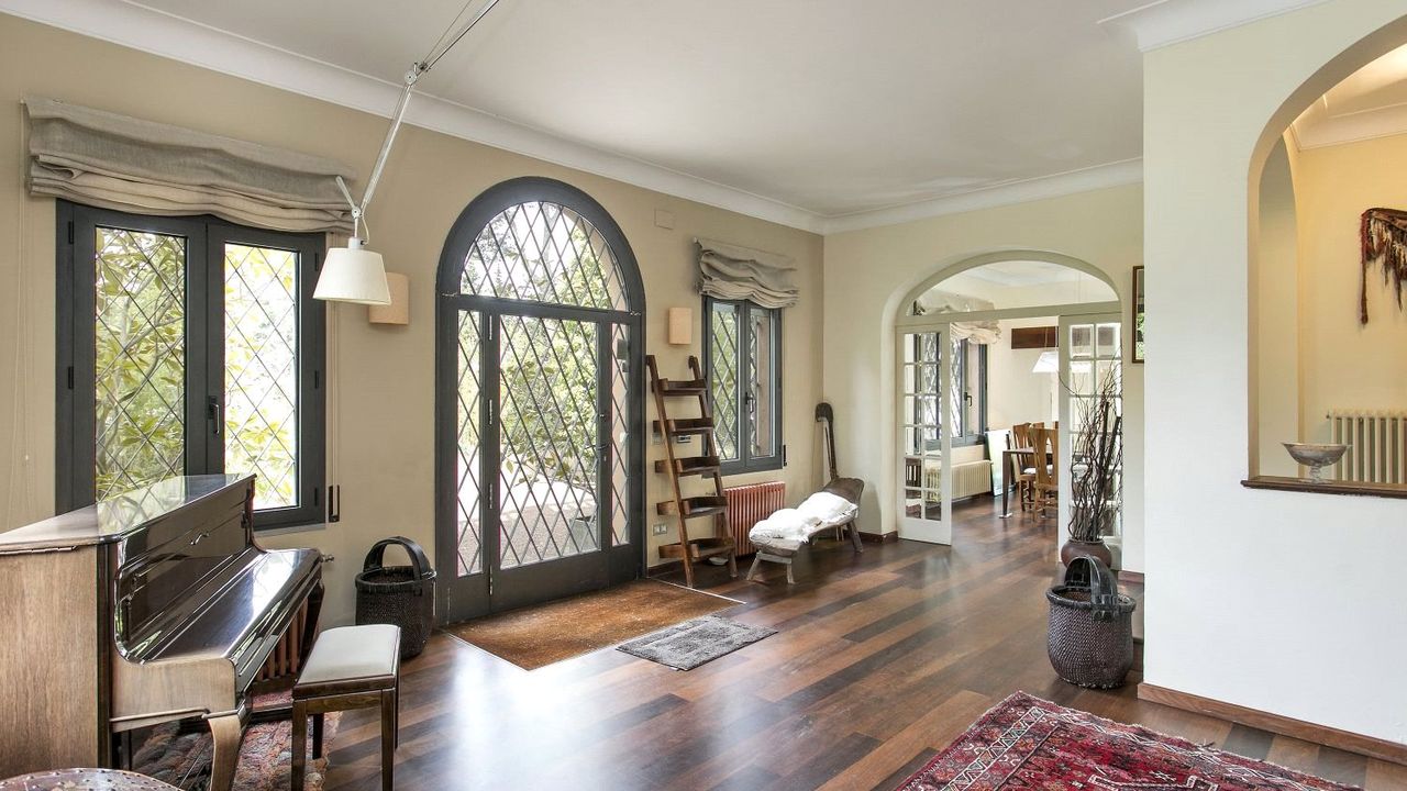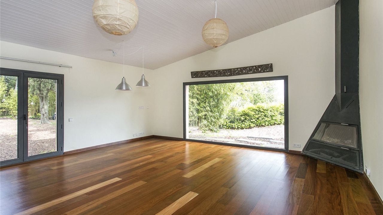 На первом этаже расположена просторная светлая гостиная/столовая. Из полностью оборудованной кухни открываются виды на ухоженный сад с прудиком. Здесь же расположены 2 спальни.