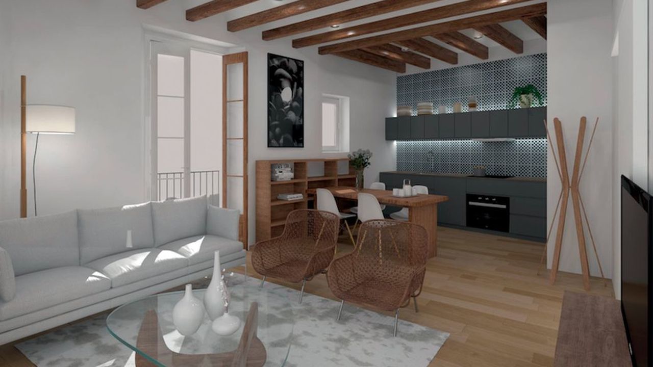 Здание расположено на солнечной площади в модном готическом квартале и состоит из пяти квартир и двух коммерческих помещений. В одном из коммерческих помещений размещён ресторан имеющий террасу, а второе помещение свободно и его возможно сдать в аренду под бар или ресторан. Экслюзивные квартиры с ремонтом высокого качества. Квартиры состоят из двух спальных комнат, двух ванных комнат, зала, кухни и балконов.