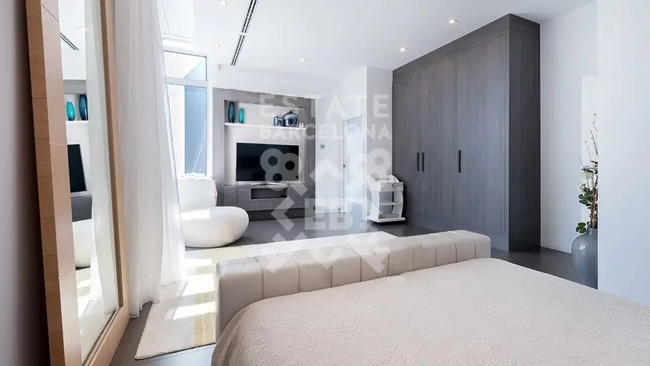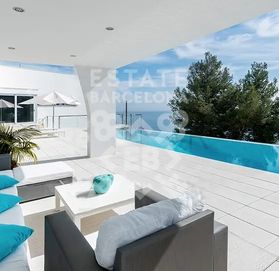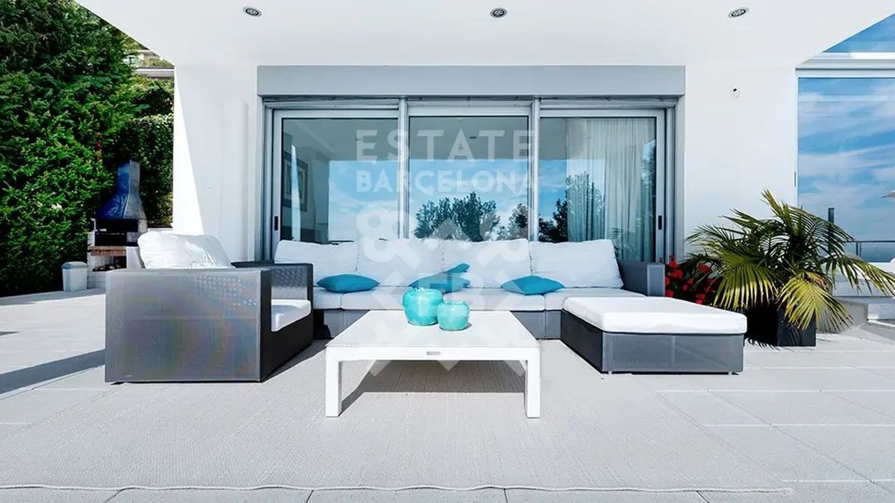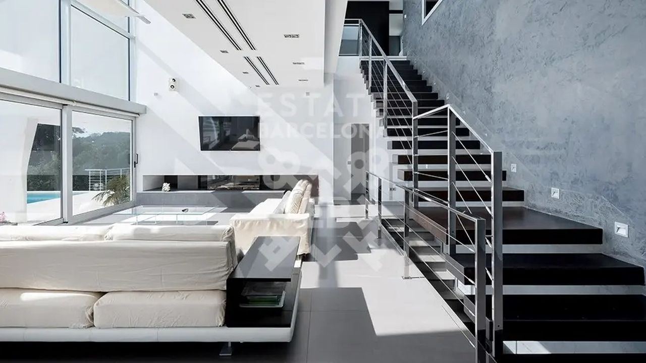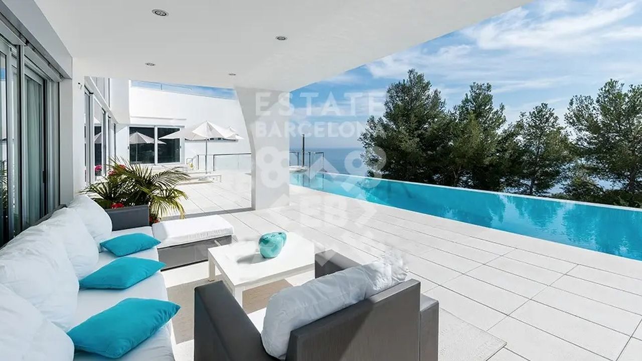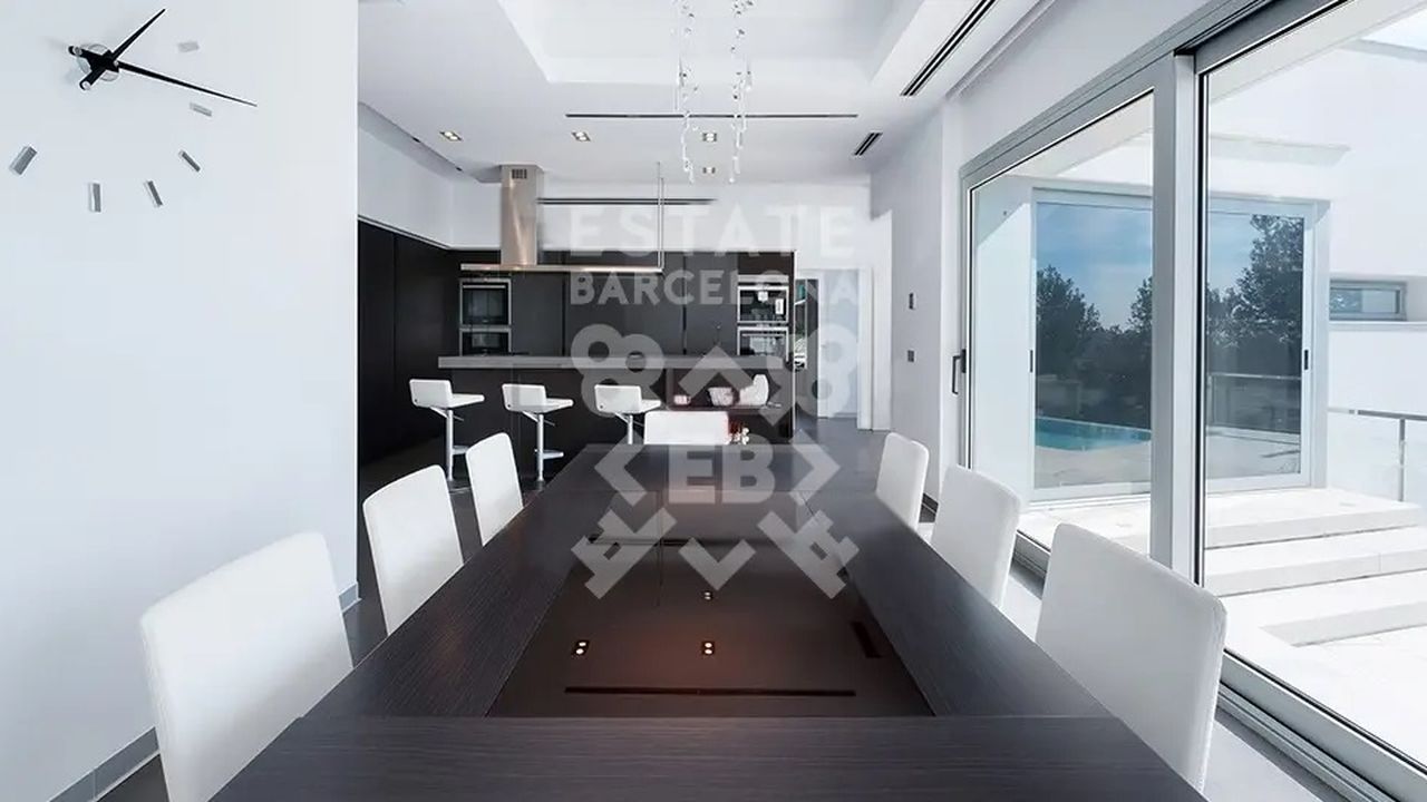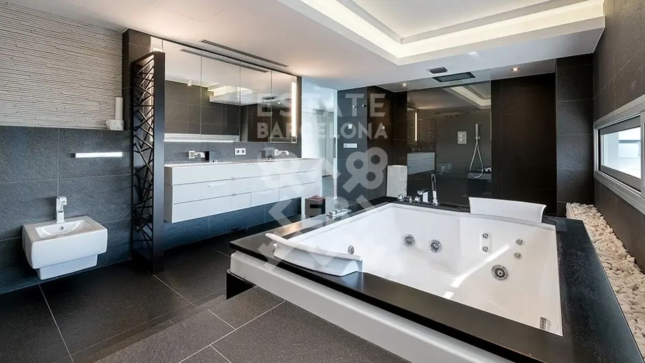 Современная вилла в элитной урбанизации Кала Сант Франсеск на побережье Коста Брава. Расстояние до Барселоны 65 км, расстояние до аэропорта Жироны 30 минут езды, до моря можно спуститься по коммунитарной лестнице за несколько минут. Построена в 2012 году с использованием высококачественных материалов. Общая площадь дома 850 м.кв. на территории 1080 м.кв. Великолепная кухня, оборудованная по последнему слову техники 21 века. С кухни можно выйти в сад, где находится бассейн. Из столовой-кухни имеется возможность лифтом подняться в хозяйскую спальню и на большую террасу , а также спуститься в СПА, состоящую из хамама, финской сауны, душевой, ванной комнаты, а также комнаты для отдыха. Спортивный зал. Прачечная со шкафами. Спальни имеют прямой выход на террасу с наружной обеденной зоной и бассейном. На верхний уровень ведет элегантная деревянная лестница и лифт. На этом уровне находятся 2 спальни с шикарными кроватями и прилегающими ванными комнатами. В них есть раздвижные стеклянные стены, ведущие на террасы с красивым видом на море, сад, горы и крепость. Спальни соединены мостом, который парит над холлом. С моста открывается дивный вид на море, скалы, пляжи и остров. На нижнем уровне также расположена комната для обслуживающего персонала: кухня, душ, туалет, отдельный вход. Всего в доме 8 различных комнат, из них 4 спальные комнаты, 6 ванных комнат, кабинет. В урбанизации есть собственная коммунитарная зона с большим бассейном, теннисными кортами, баром и детской площадкой. У моря есть парковка исключительно для жителей урбанизации. Охрана 24 часа в сутки.