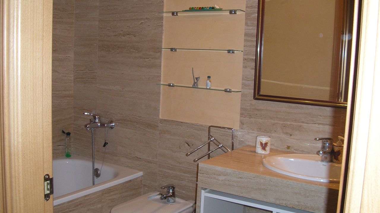 Unique opportunity! Beautiful ground floor apartment just a few meters from the beach. It has two entrances; one direct from the street and the other on the premises. Next to the garden is the terrace that gives access to the LIVING ROOM WITH SEA VIEWS. The spacious living room, very bright, connects with the two double bedrooms. One of the rooms has the view of the garden and the terrace of the house. Next to the bedrooms, there are two full bathrooms. The living room connects with an entrance hall that communicates with a large and bright kitchen, FULLY EQUIPPED with a built-in kitchen. In addition, the apartment has a small inner courtyard.