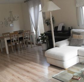 "Таунхаус выходит на все стороны улицы. Очень солнечный. Расположен в центре города, близко к школам и детским садам. Все