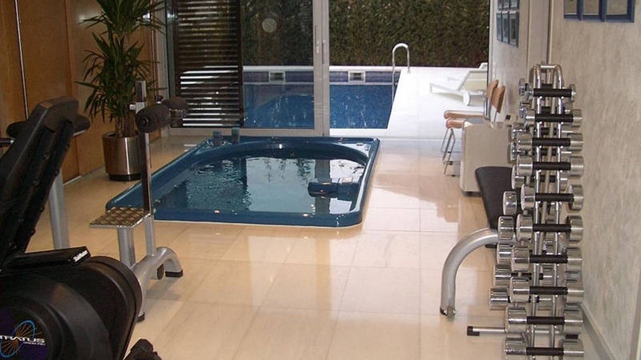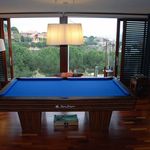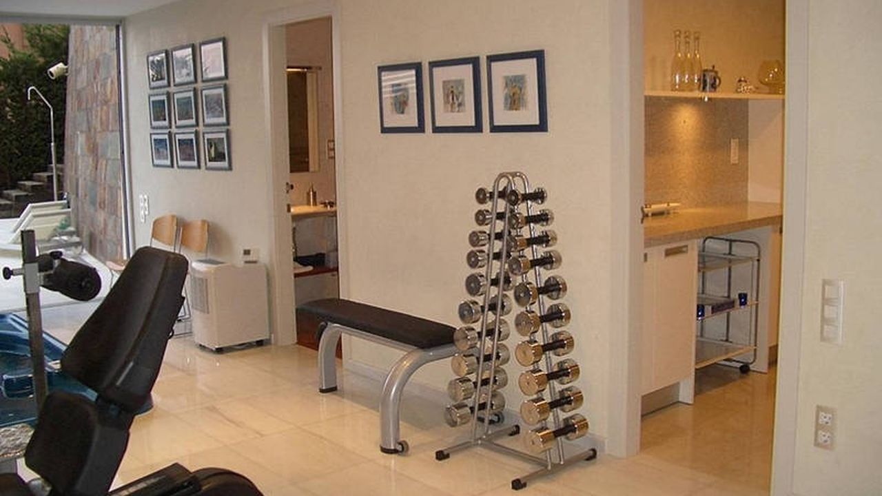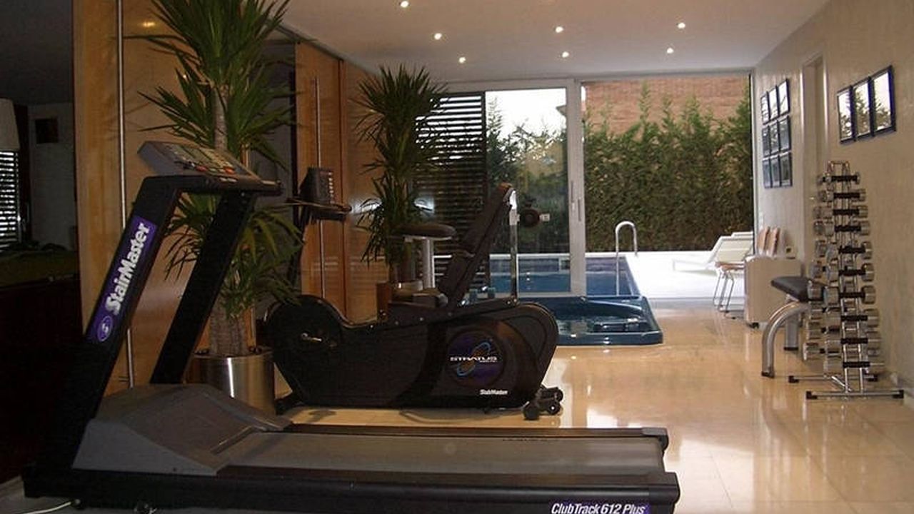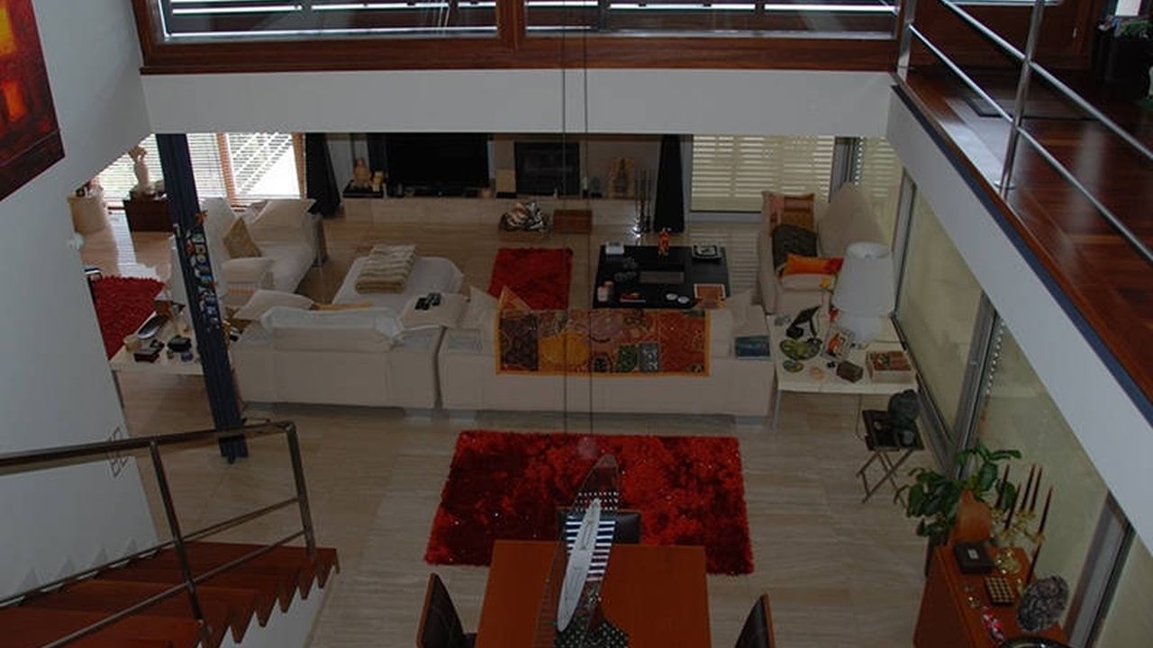 Просторная гостиная со столовой и камином, основная супружеская спальня с гардеробом, ванной комнатой и выходом на террасу, ещё три супружеские спальни со своими ванными комнатами, оборудованная и полностью экипированная кухня-офис с островом, кабинет с библиотекой, тренажёрный зал со СПА, джакузи, сауной, мини бассейном и вспомогательной кухней, бильярдная, винный погреб, кладовка, гладильная.