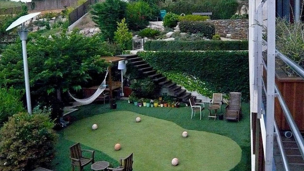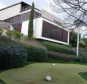 Средиземноморский сад с бассейном 10х5 и две площадки мини гольфа.