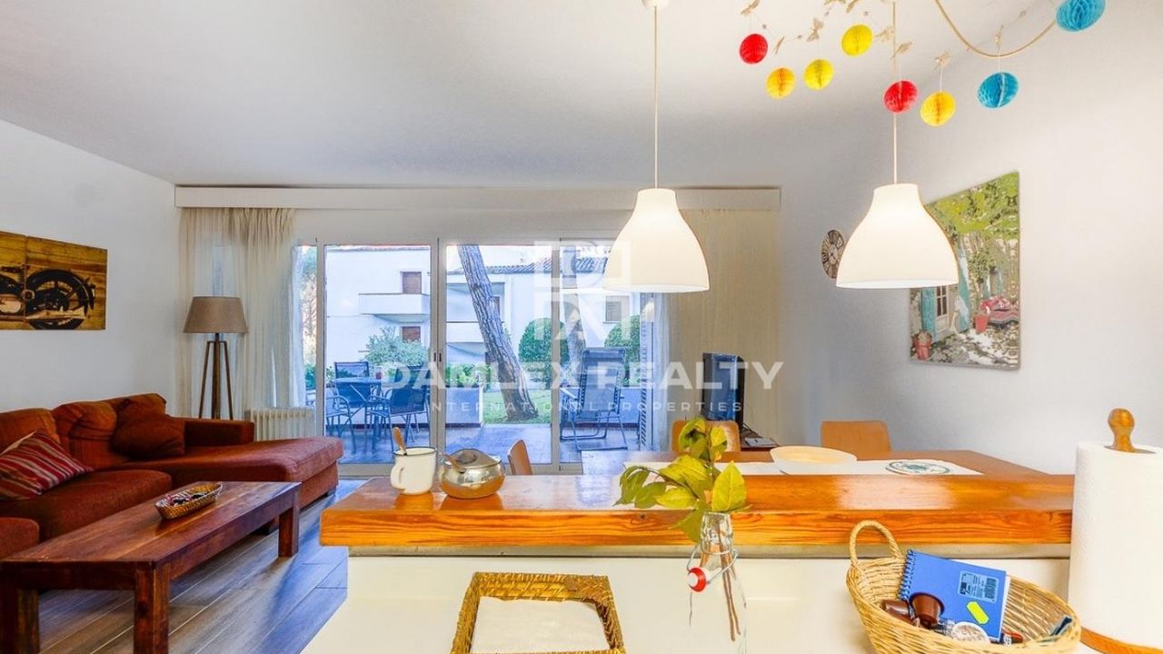 Апартаменты расположенные в уникальном месте между Сант Антони де Калонже и Плайя де Аро, всего в 250 метрах от чудесной бухты Кан Кристус. Здание находится в окружении соснового парка, в котором есть различные коллективные зоны: теннисные корты, пинг-понг, барбекю, игровой зал, зал для собраний, парковка.Здание было построено в 1979 году и полностью отремонтировано в 2018 году. Площадь апартаментов 102 м2. Большой холл делит квартиру на зону дня и зону ночи. В зоне дня находится гостиная-столовая, кухня, терраса 11 м2. Терраса выходит в сад. В ночной зоне находятся три спальни: главный суит с ванной комнатой, две спальни и еще одна ванная комната.Кондоминиум является приватным, есть много место для парковки, но для удобства можно приобрести в собственность парковочное место.Апартаменты продаются меблированными. Отопление электрическое.