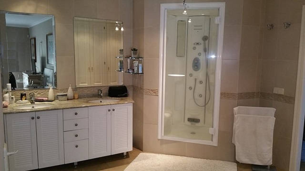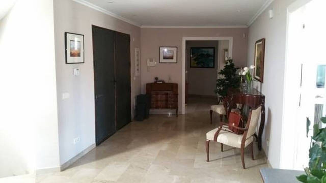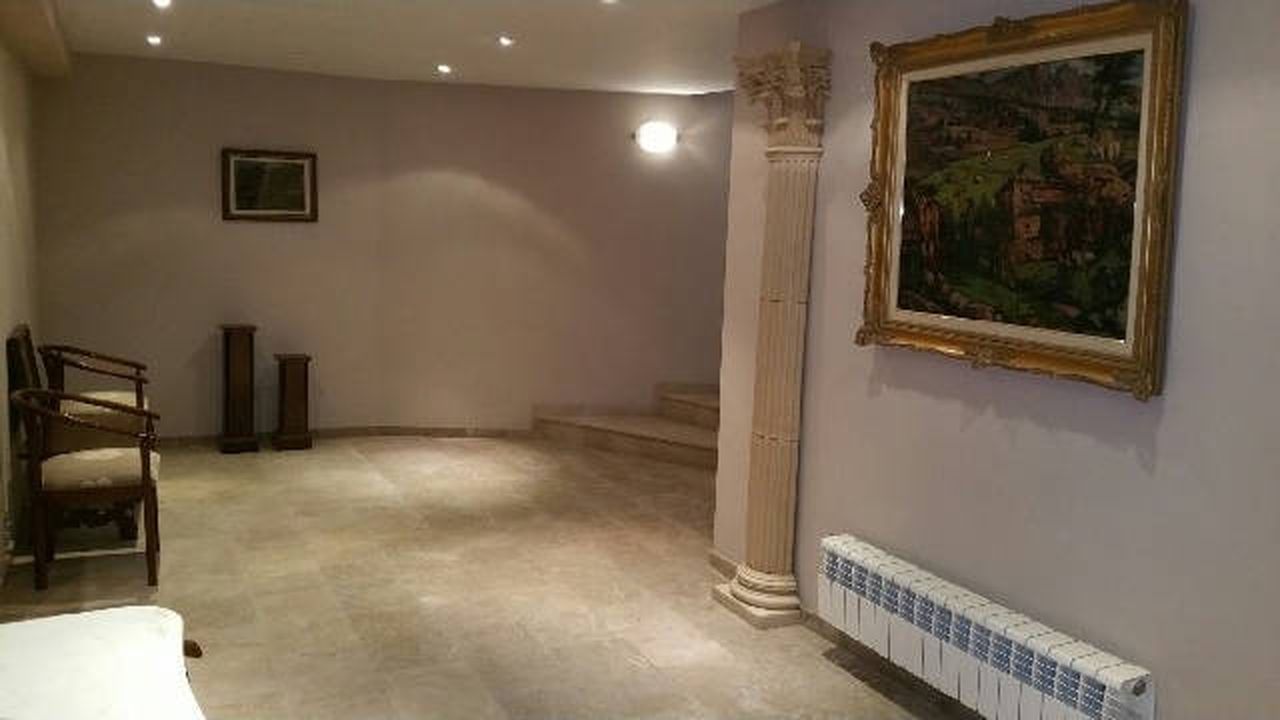 Гостиная 50 кв.м. с камином и выходом на террасу, оборудованная и полностью экипированная кухня-офис 30 кв.м., супружеская спальня 30 кв.м. с ванной комнатой и гардеробом, ещё четыре спальни 22 кв.м. каждая со своими ванными комнатами и встроенными шкафами, гладильня с с/у и душем.