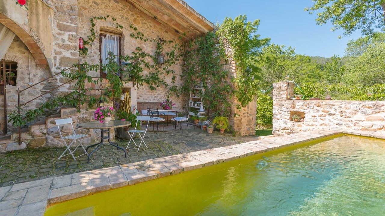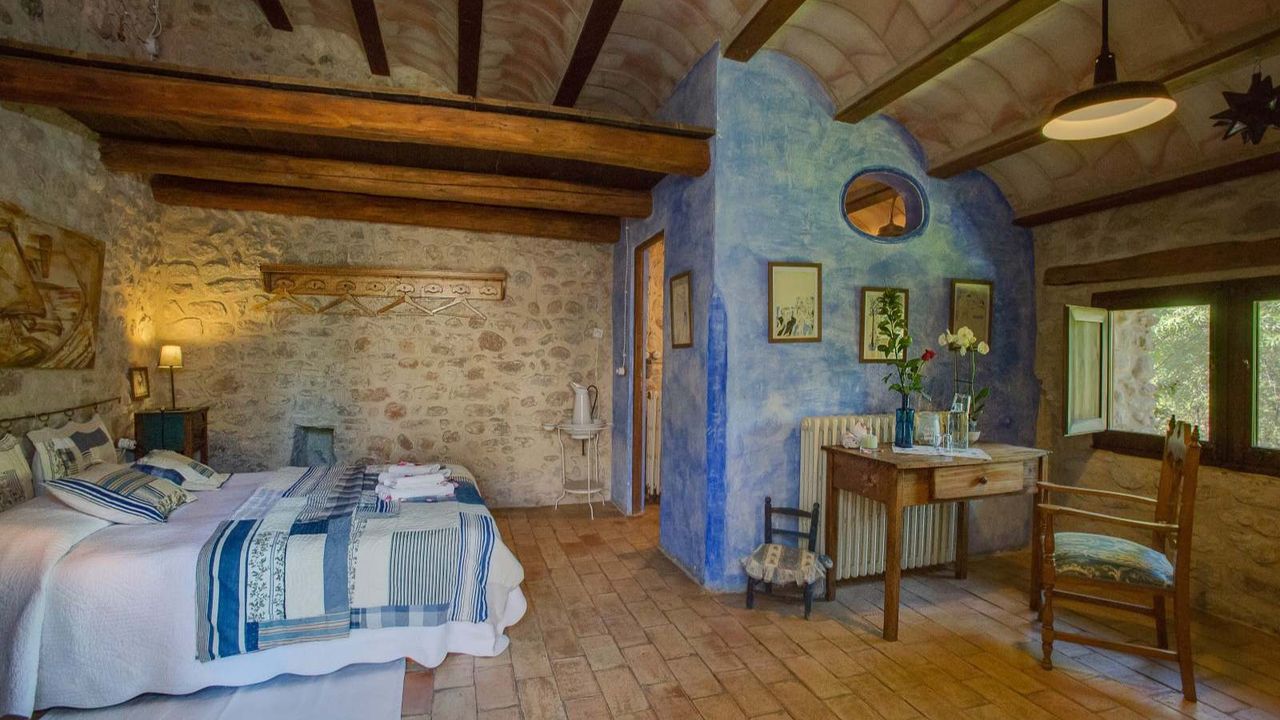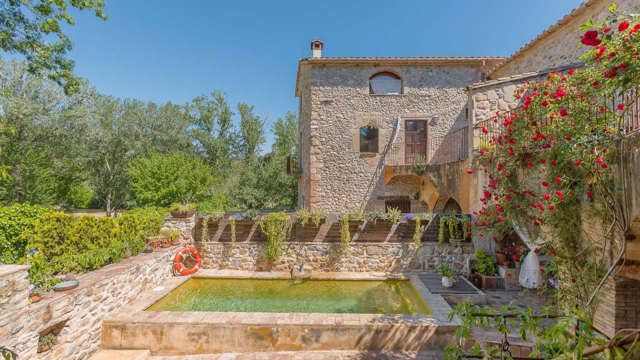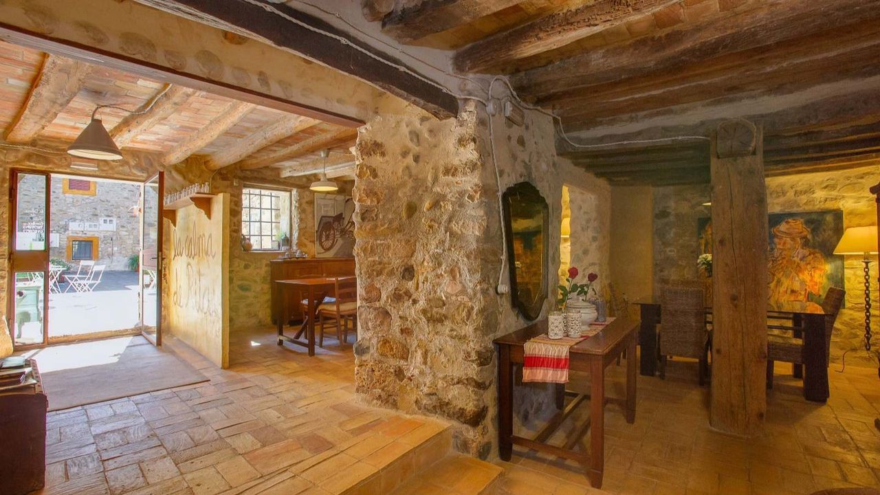 Бутик отель, расположенный в 20 км от города Жирона. Каменная масея 1238 года в окружении каменных построек древнего городка!!! Войдя в дом мы обнаружим просторную столовую, дальше открытая прихожая, кабинет, ванная комната и помещение для завтраков. Спускаясь по лестнице находится винный погреб, немного позади расположена кухня, оборудованная качественным оборудованием, техническое помещение и терраса. На верхних этажах расположены 8 спальных комнат, 7 ванных комнат, просторные салоны, камин, которому уже 700 лет. Отель обставлен со вкусом, сохраняя стиль той эпохи. Проведено газовое отопление. У отеля есть разрешение на обустройство летней террасы вдоль речки, где гости могли бы наслаждаться чудесным видом и завтраком.