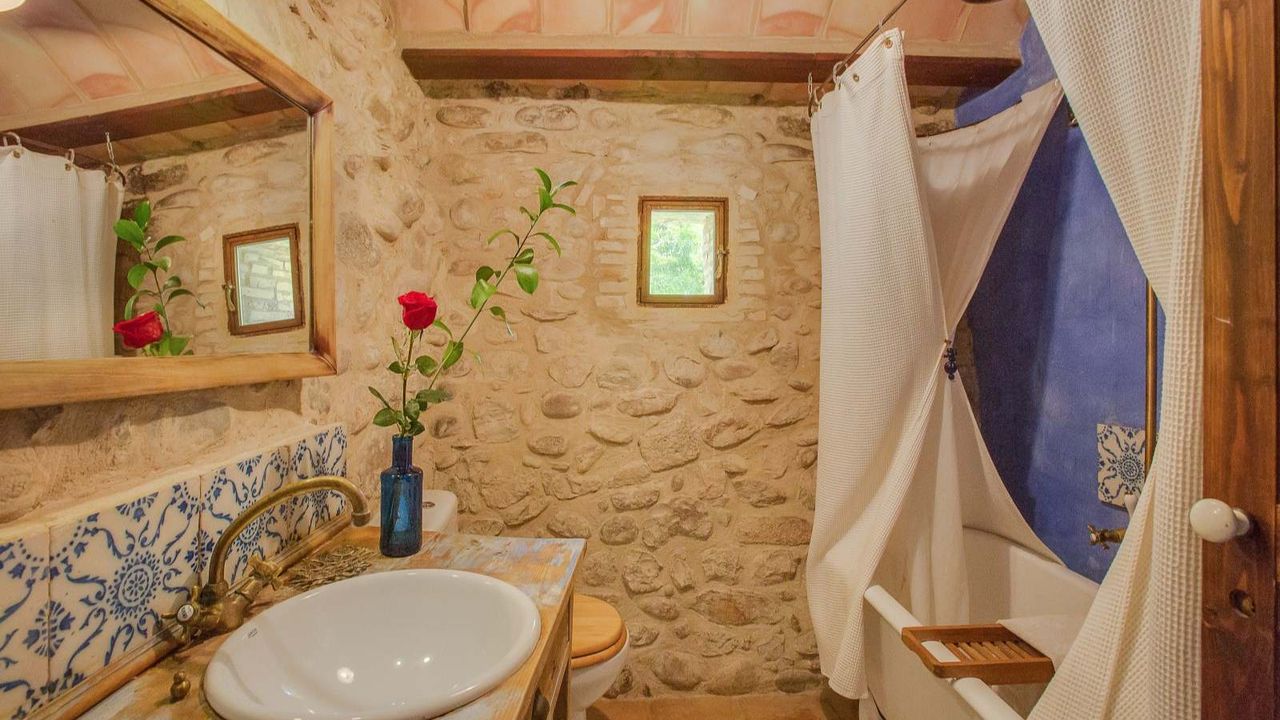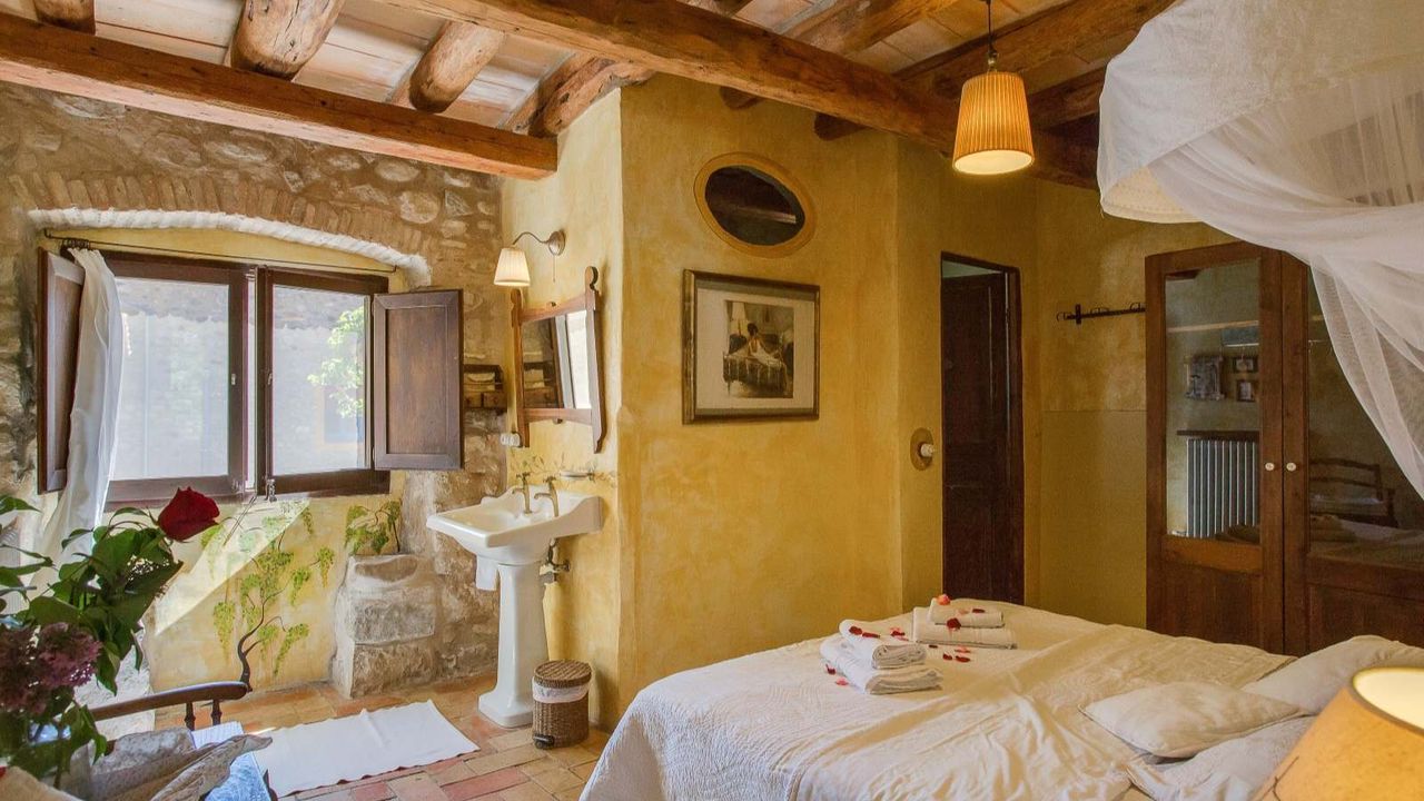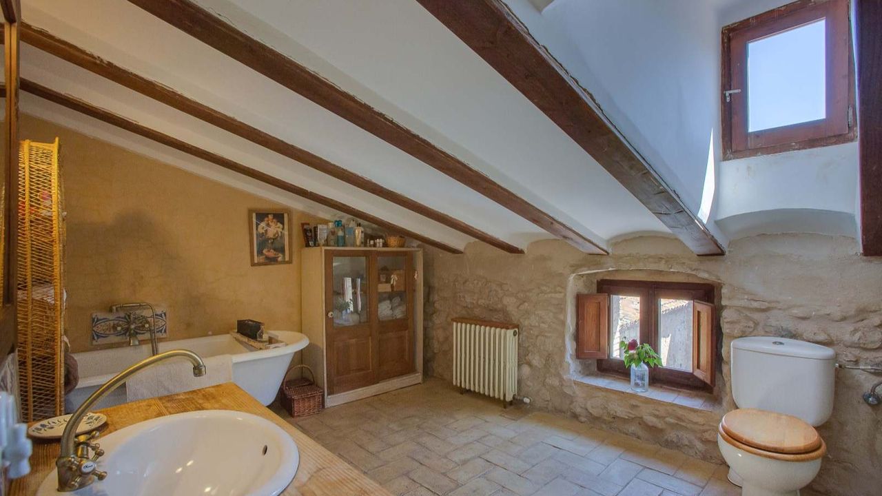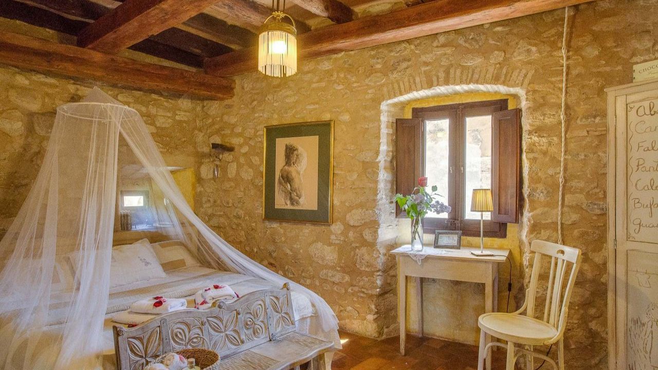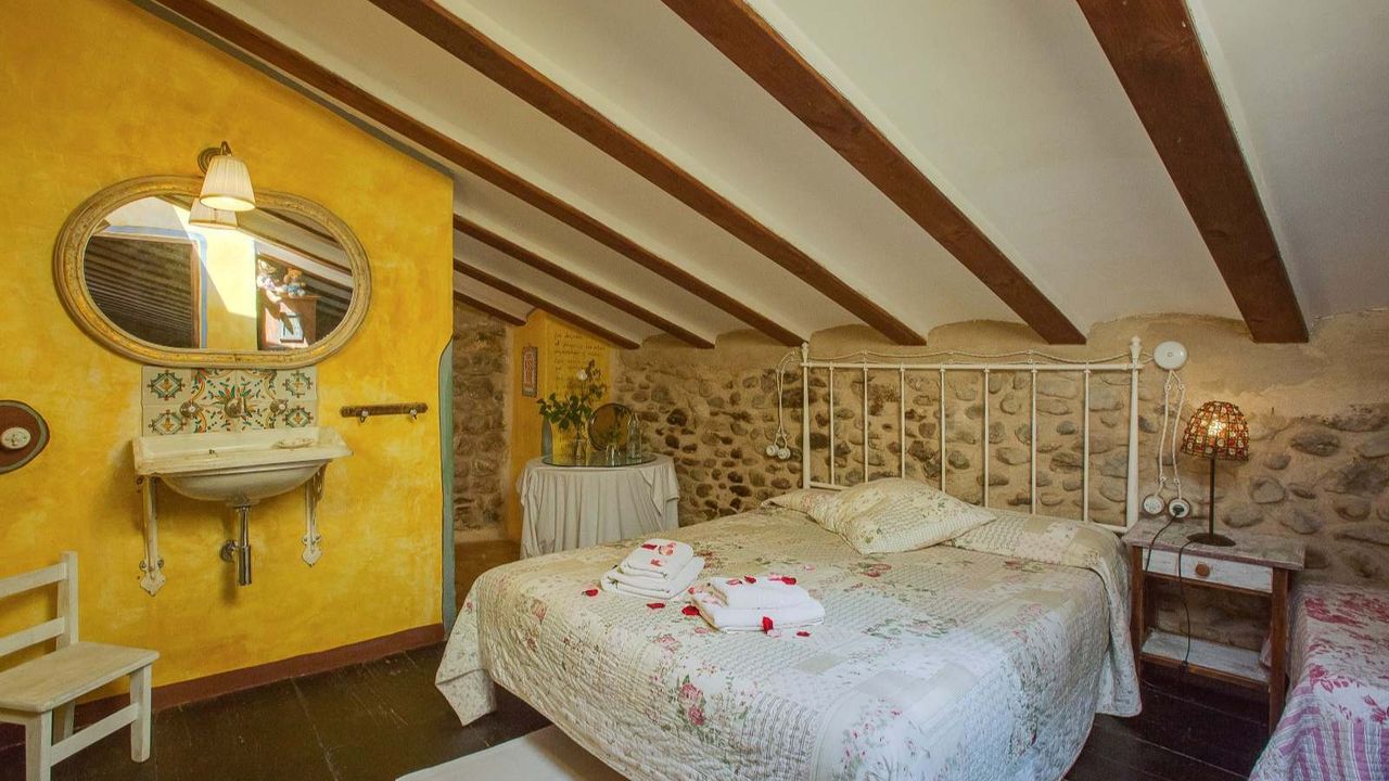 Бутик отель, расположенный в 20 км от города Жирона. Каменная масея 1238 года в окружении каменных построек древнего городка!!! Войдя в дом мы обнаружим просторную столовую, дальше открытая прихожая, кабинет, ванная комната и помещение для завтраков. Спускаясь по лестнице находится винный погреб, немного позади расположена кухня, оборудованная качественным оборудованием, техническое помещение и терраса. На верхних этажах расположены 8 спальных комнат, 7 ванных комнат, просторные салоны, камин, которому уже 700 лет. Отель обставлен со вкусом, сохраняя стиль той эпохи. Проведено газовое отопление. У отеля есть разрешение на обустройство летней террасы вдоль речки, где гости могли бы наслаждаться чудесным видом и завтраком.